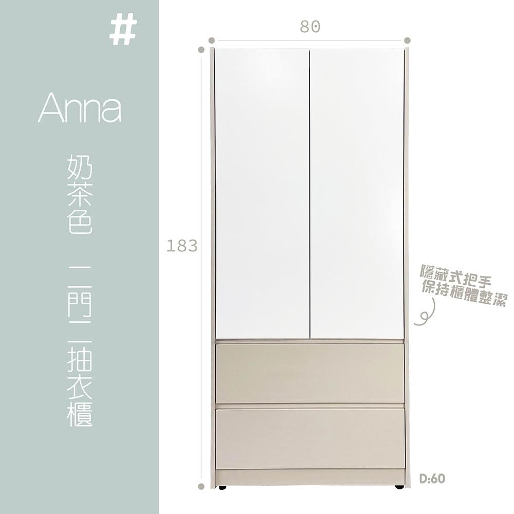 大象傢俱『福利品』台灣製造|Anna 奶茶色 80cm 二門二抽衣櫃 衣櫃 吊衣櫃 收納櫃 抽屜衣櫃 木心板 免組裝 最高3年保固