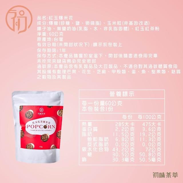 初味茶萃紅玉紅茶爆米花- 60g/包 紅玉紅茶 手工採製 茶風味 爆米花 自家茶園種植