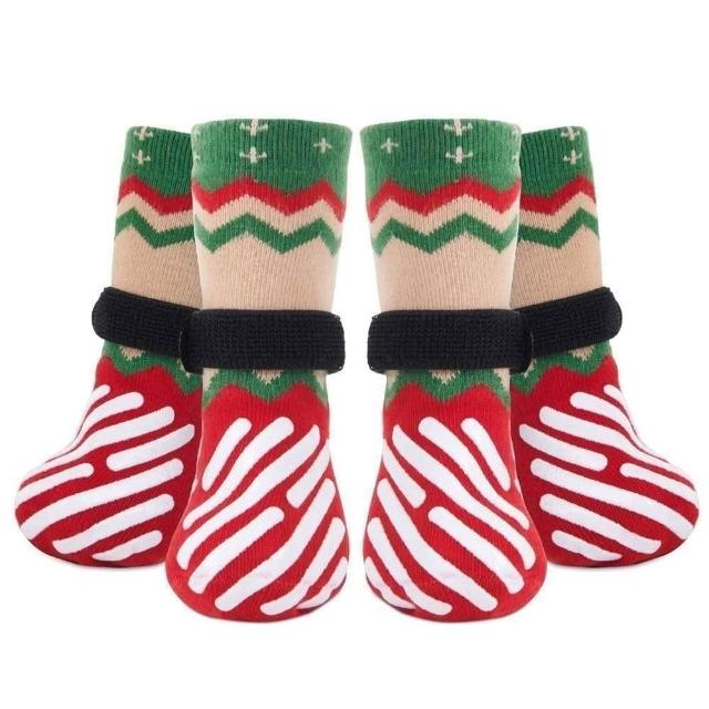 4D寵物止滑襪 現貨 360度止滑 狗狗止滑 高彈性加厚舒適棉 保暖舒適 襪筒加長 可調節固定帶 不脫落不怕襪身扭轉