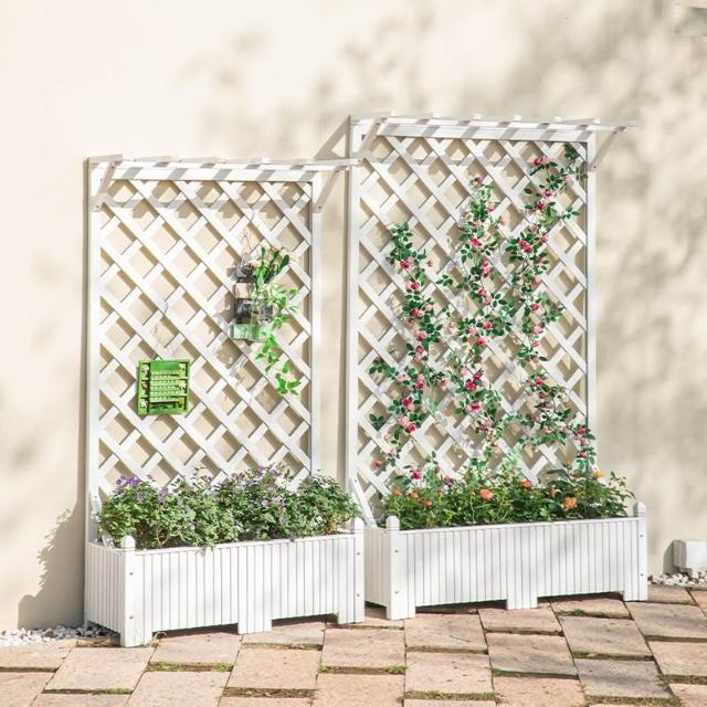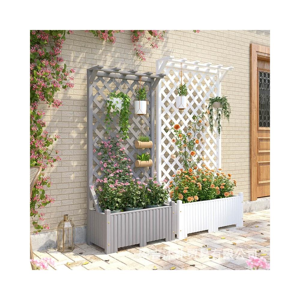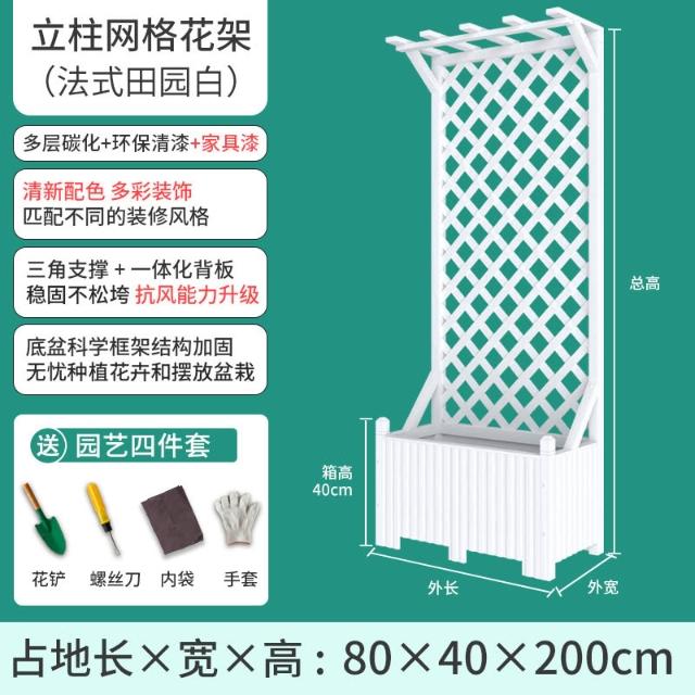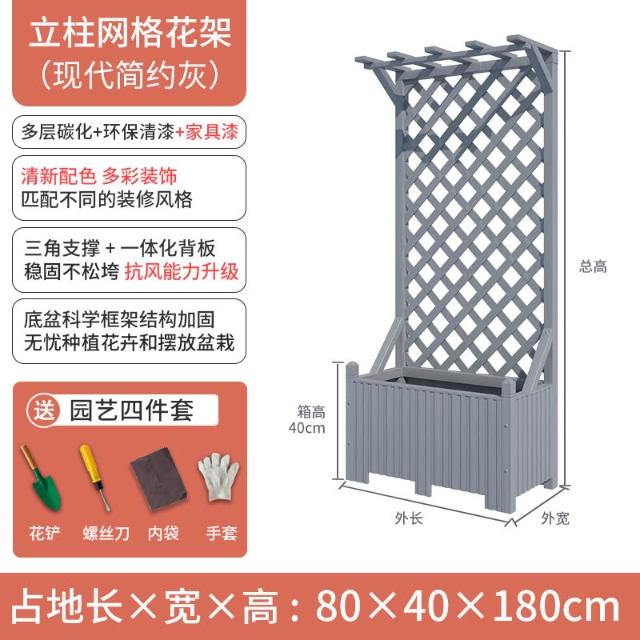 戶外庭院防腐木花架陽臺落地網格爬藤架網紅裝飾室外高端隔斷花箱