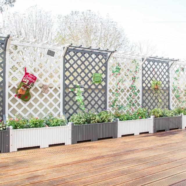 戶外庭院防腐木花架陽臺落地網格爬藤架網紅裝飾室外高端隔斷花箱