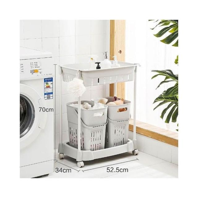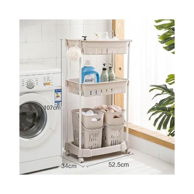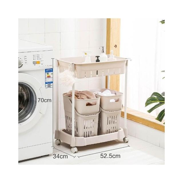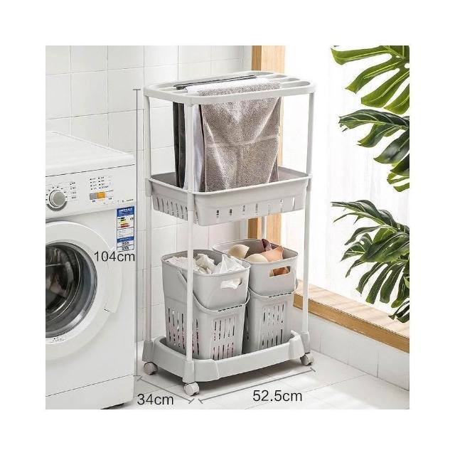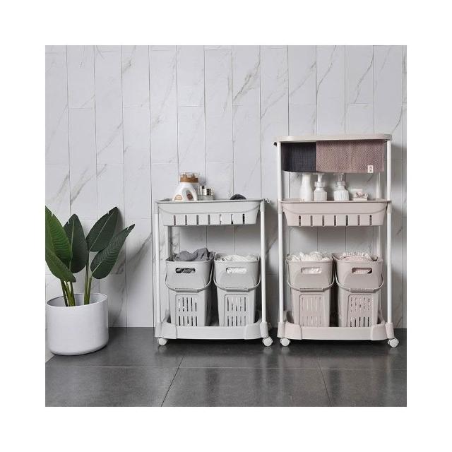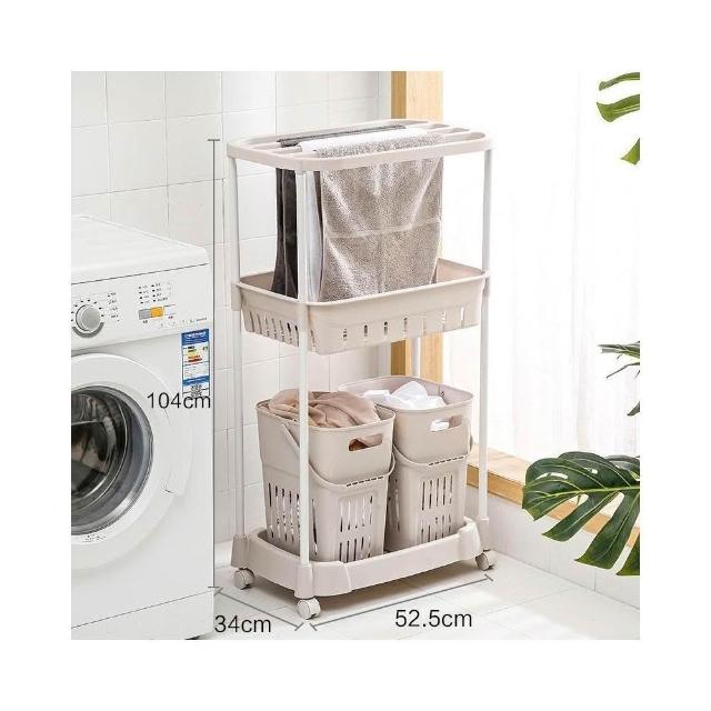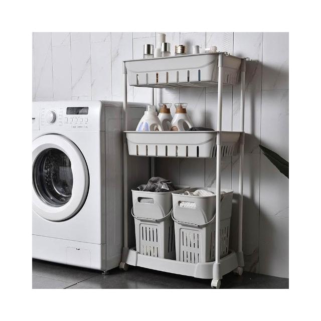 髒衣籃 衣服收納筐/簍 塑膠洗衣籃子 家用衛生間衣簍/桶/籃/框 浴室置物架(灰色/卡其色 多層可選)
