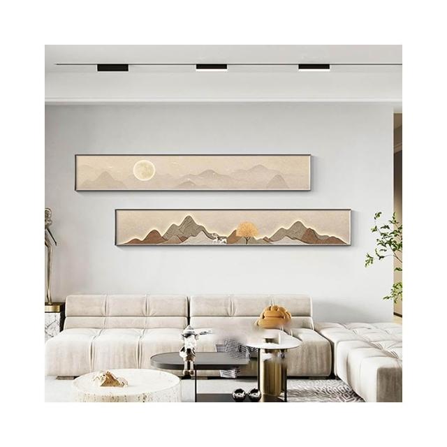 免運 山水畫客廳掛畫/沙發背景牆裝飾畫/原木風大氣壁畫/高級感輕奢二聯畫