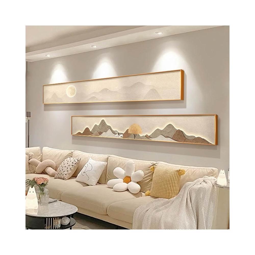 免運 山水畫客廳掛畫/沙發背景牆裝飾畫/原木風大氣壁畫/高級感輕奢二聯畫