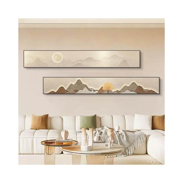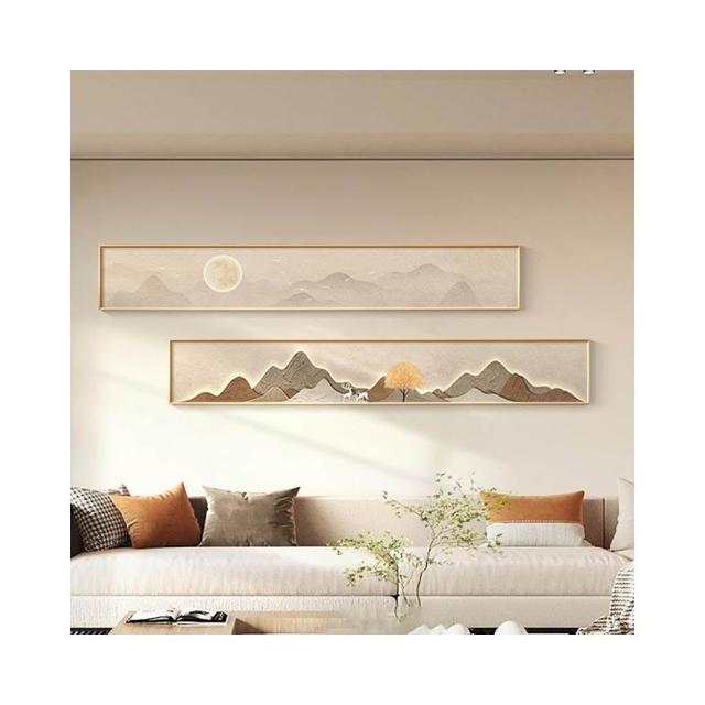 免運 山水畫客廳掛畫/沙發背景牆裝飾畫/原木風大氣壁畫/高級感輕奢二聯畫