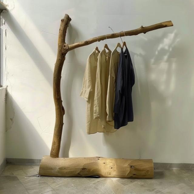 樹枝掛衣杆服裝架侘寂風格創意掛衣架簡約原木風格服裝店櫥窗吊架
