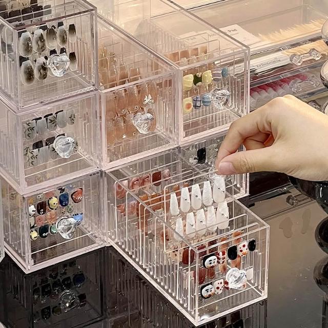ls*桌面美甲穿戴甲收納盒防塵透明收納甲片抽屜式指甲貼片展示盒