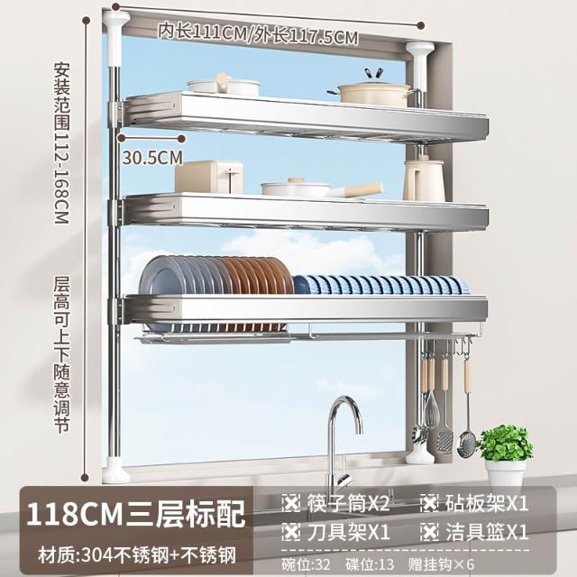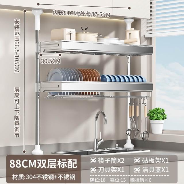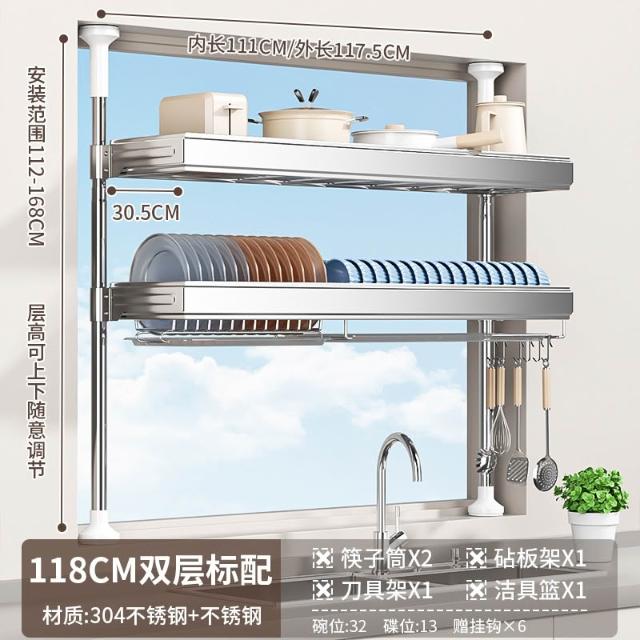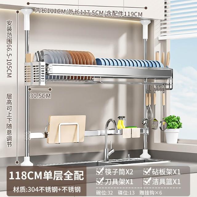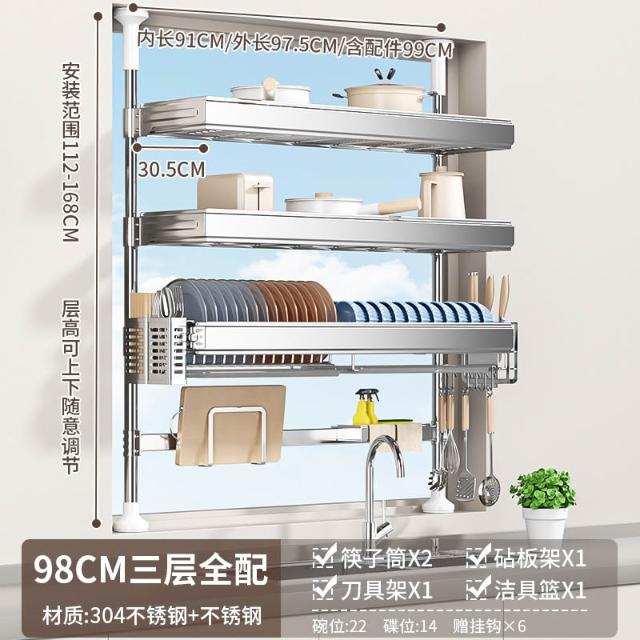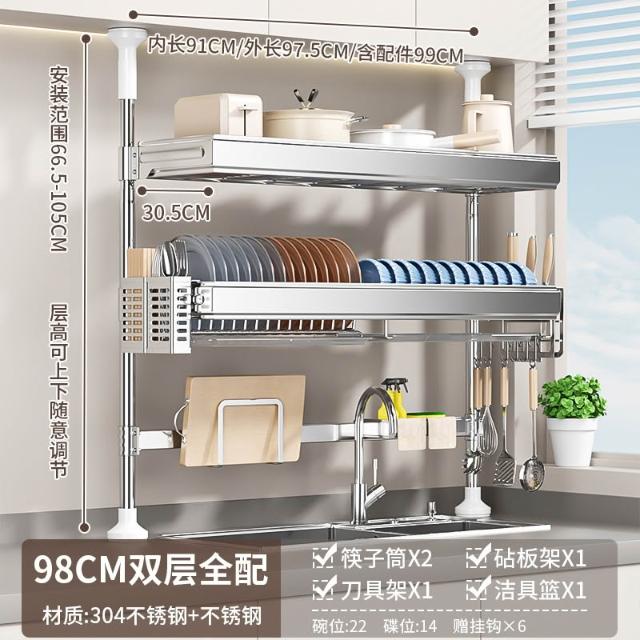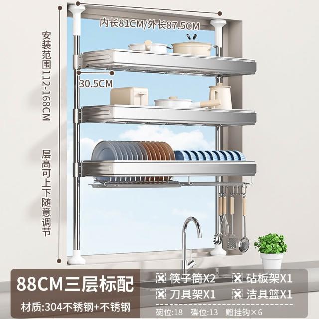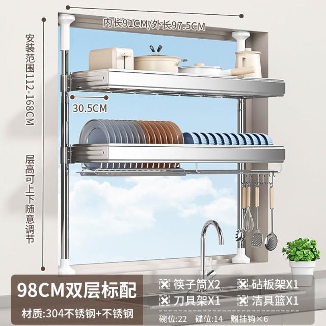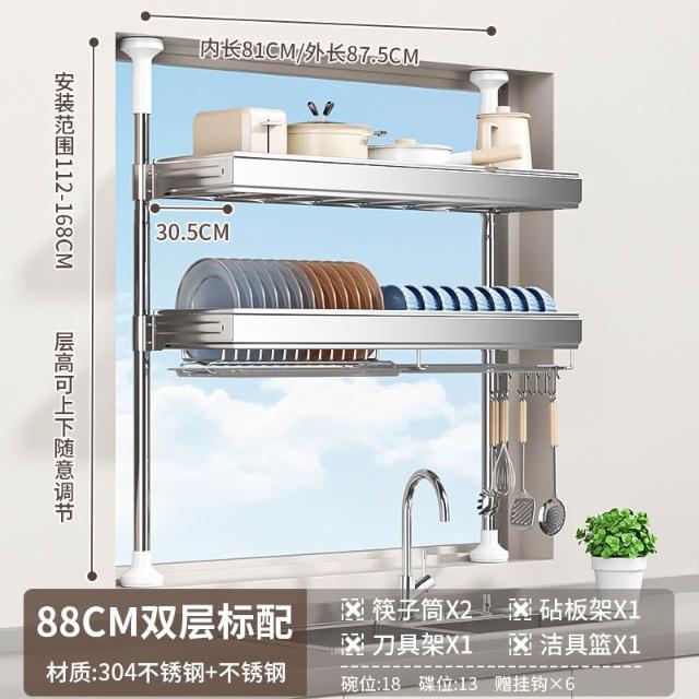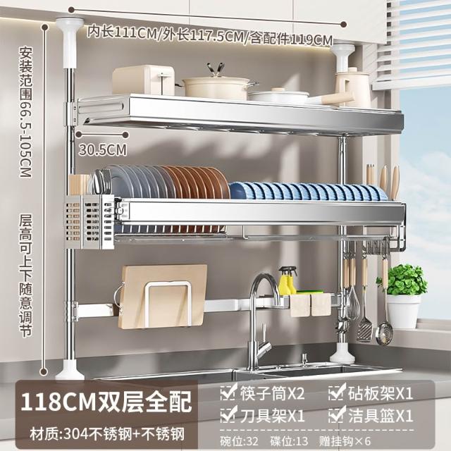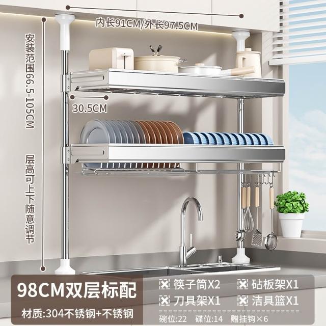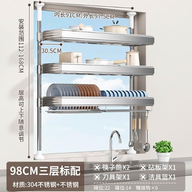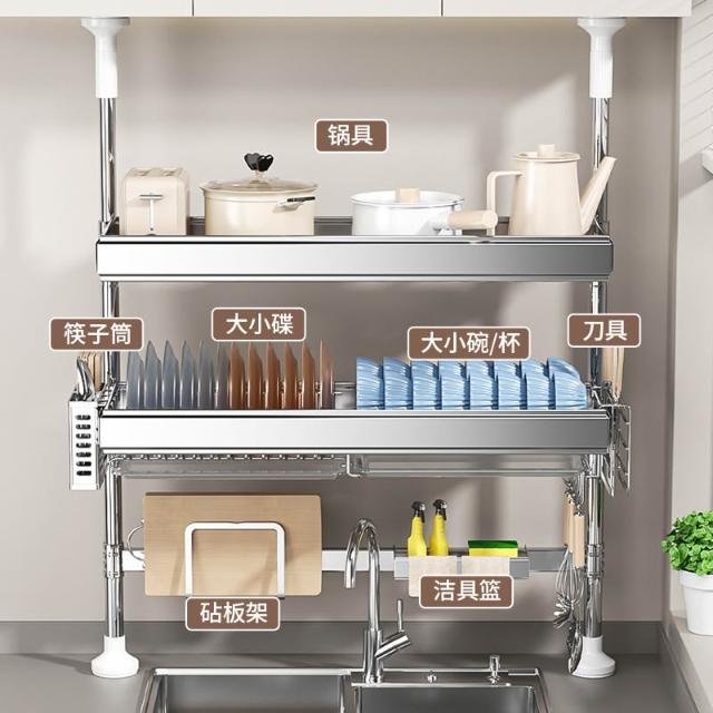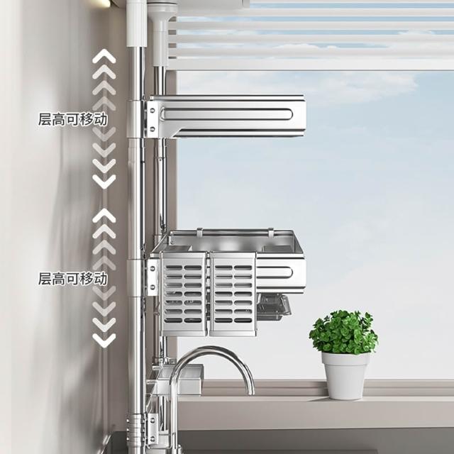 304不銹鋼廚房頂天立地水槽置物架碗碟瀝水架臺面多功能水池收納
