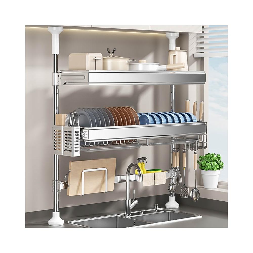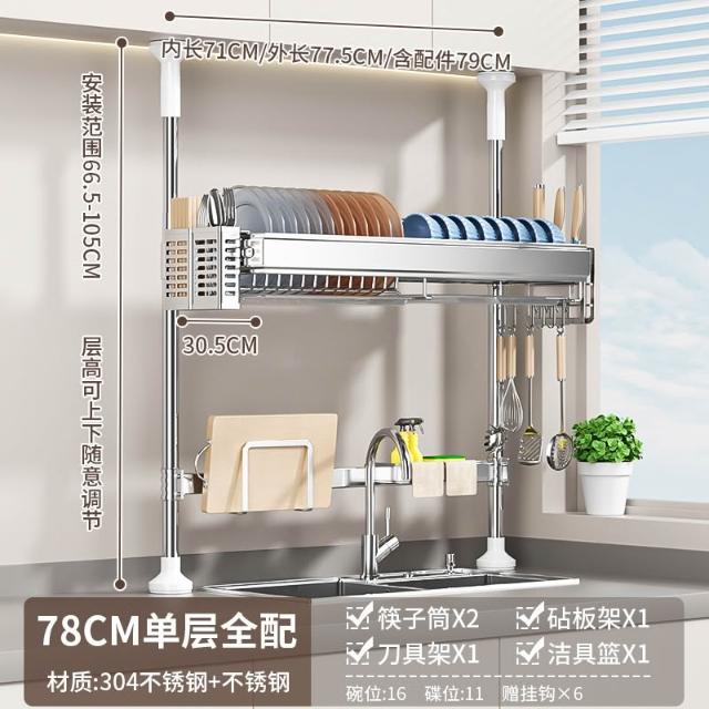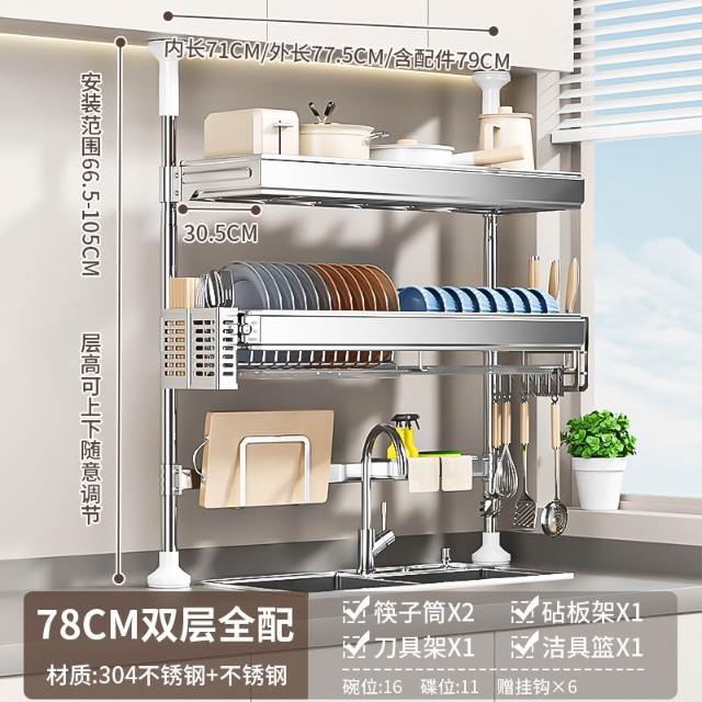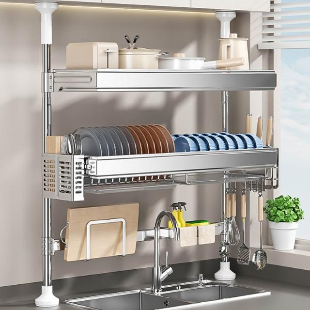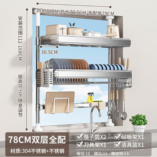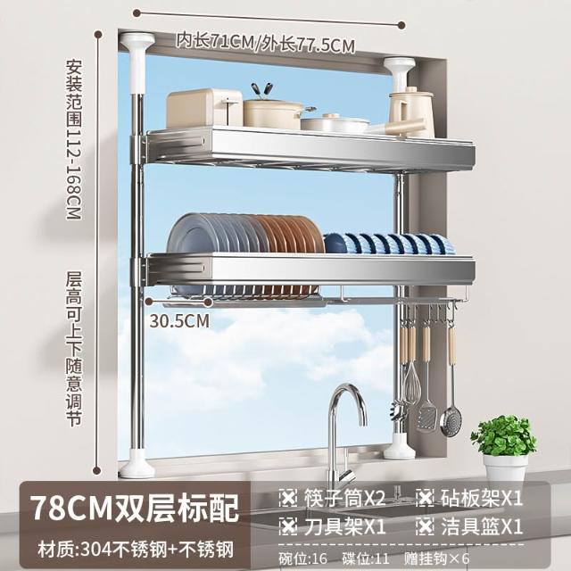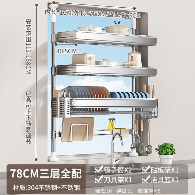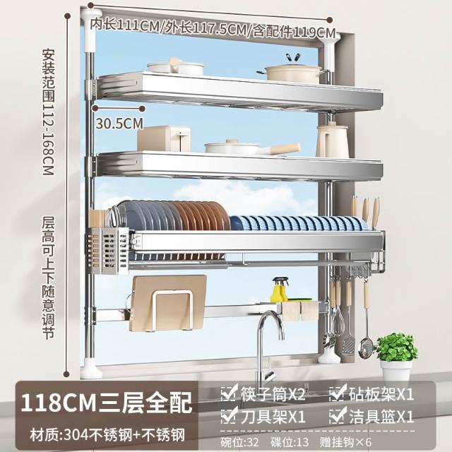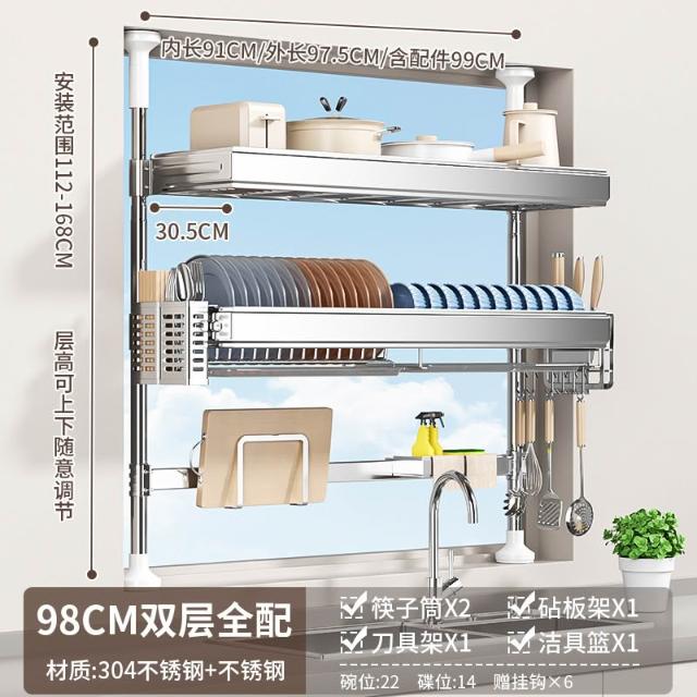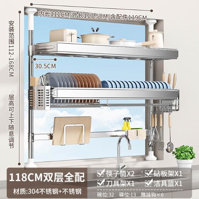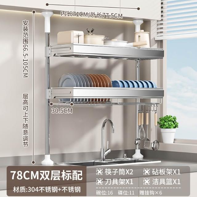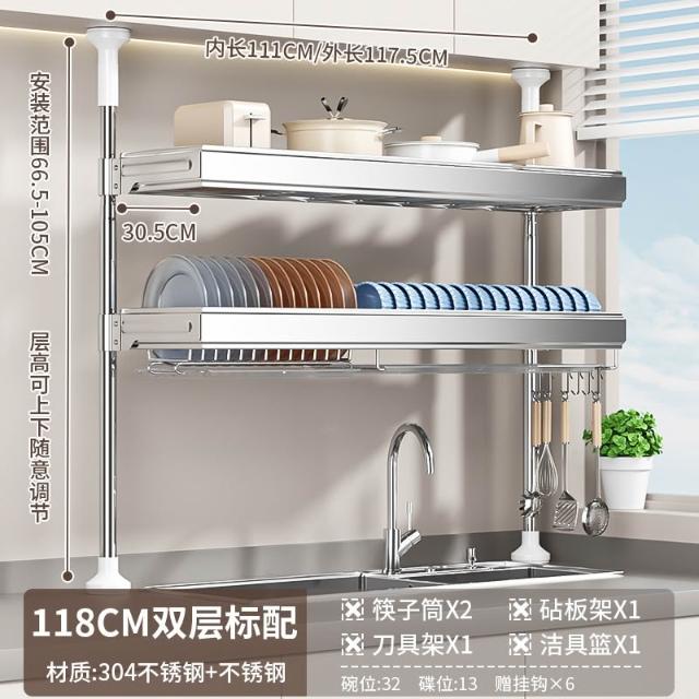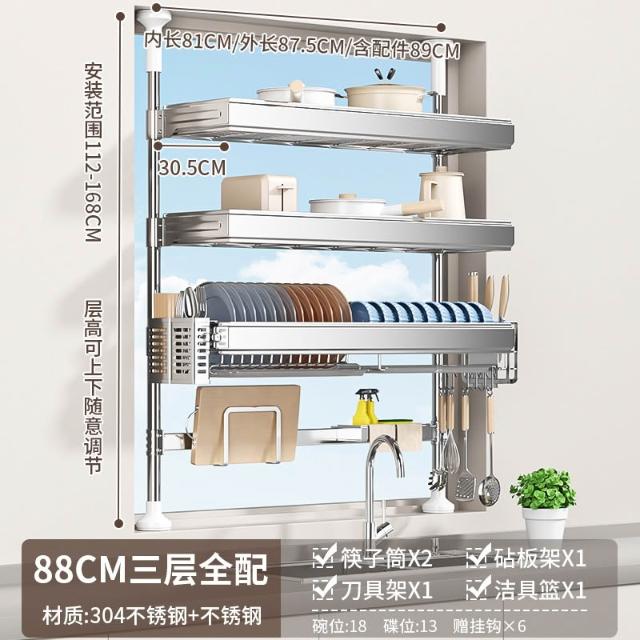 304不銹鋼廚房頂天立地水槽置物架碗碟瀝水架臺面多功能水池收納