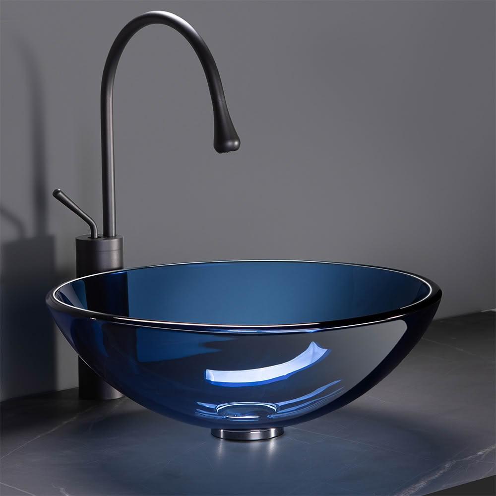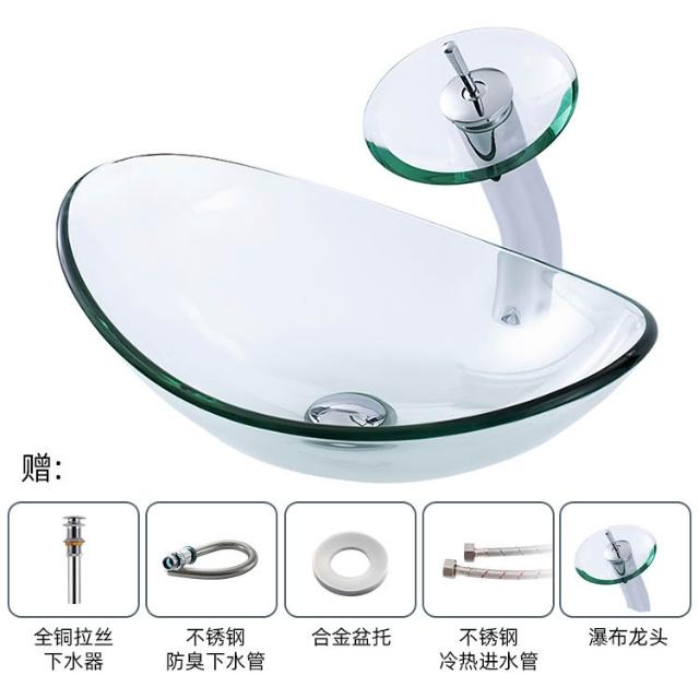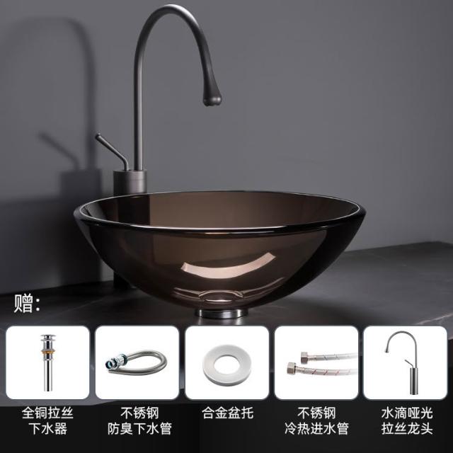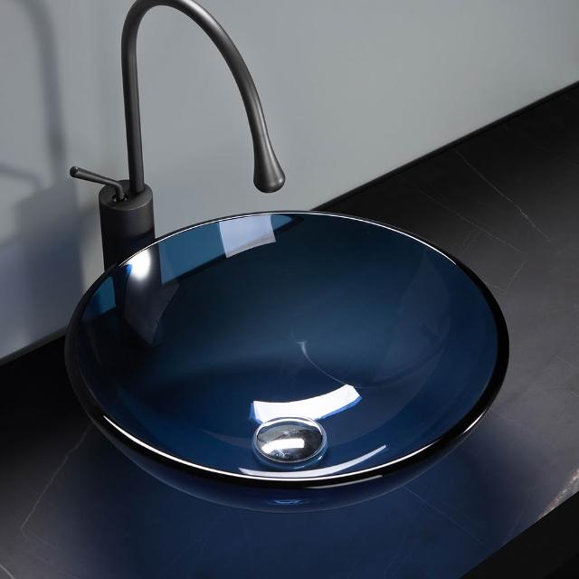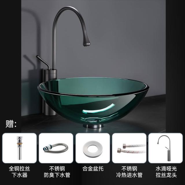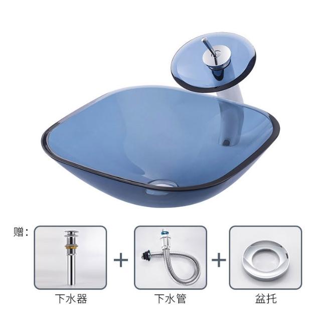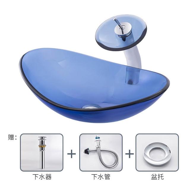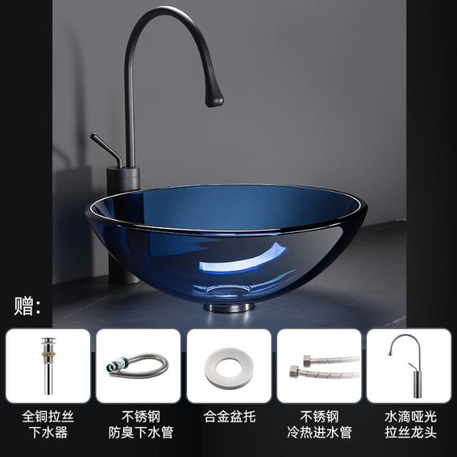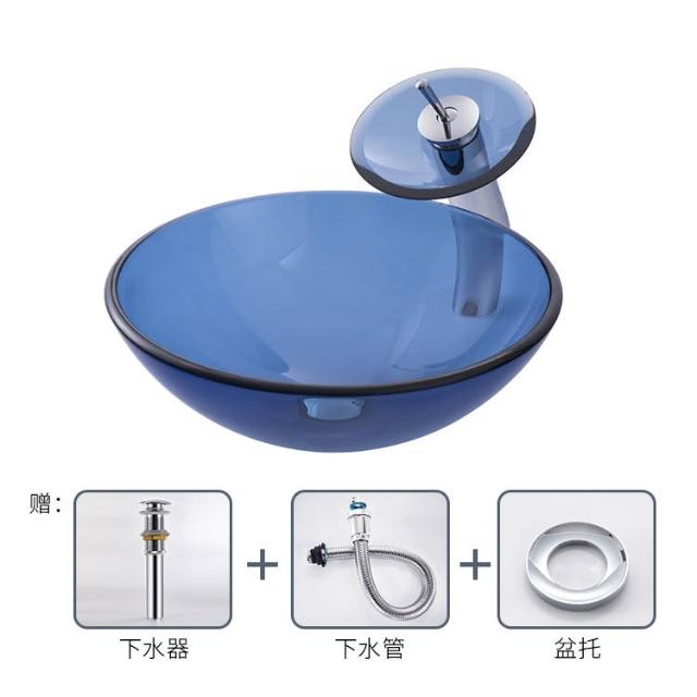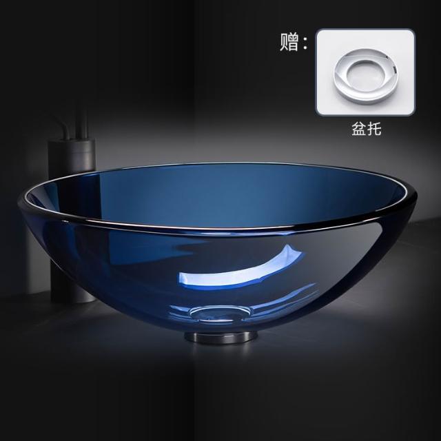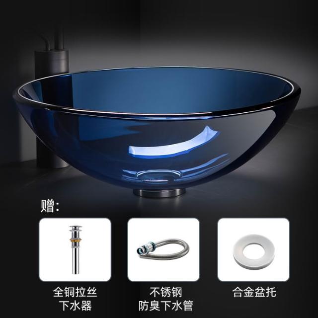 浴室洗臉盆鋼化玻璃臺上盆衛生間藝術盆藍色玻璃洗手盆廠家批發