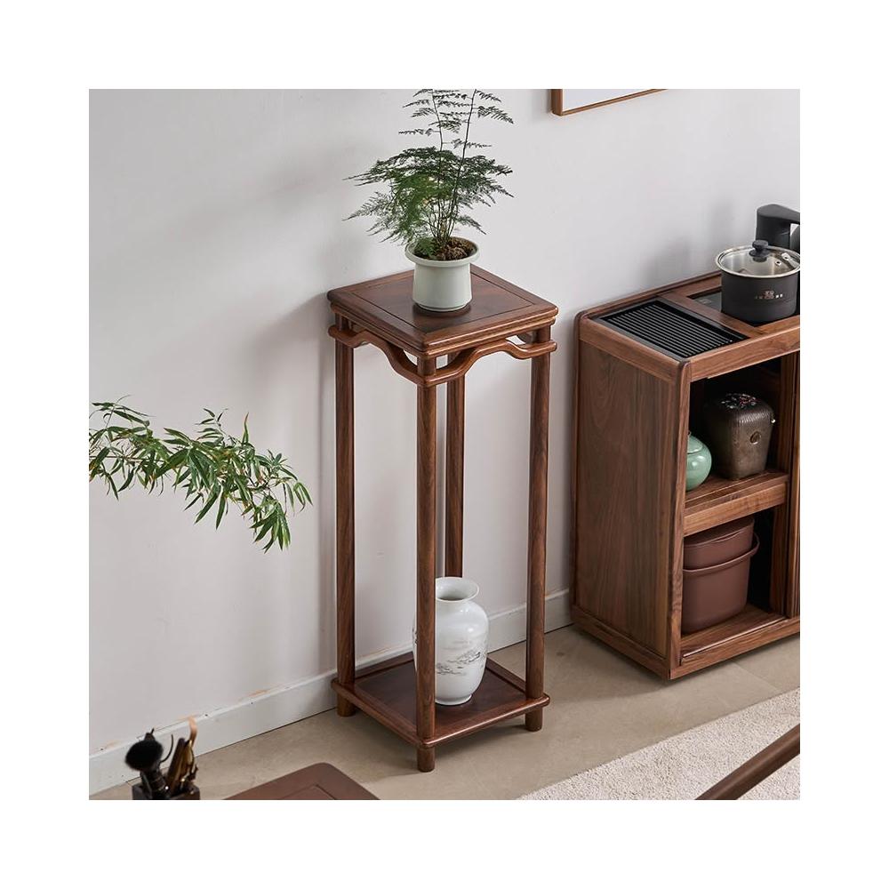 胡桃木中式花架陽臺置物架實木花架子花盆架客廳落地式收納花台架