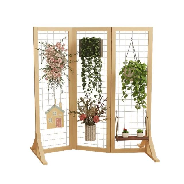ll落地式屏風網格花架鐵藝實木陽臺客廳戶外庭院吊籃綠蘿植物置物