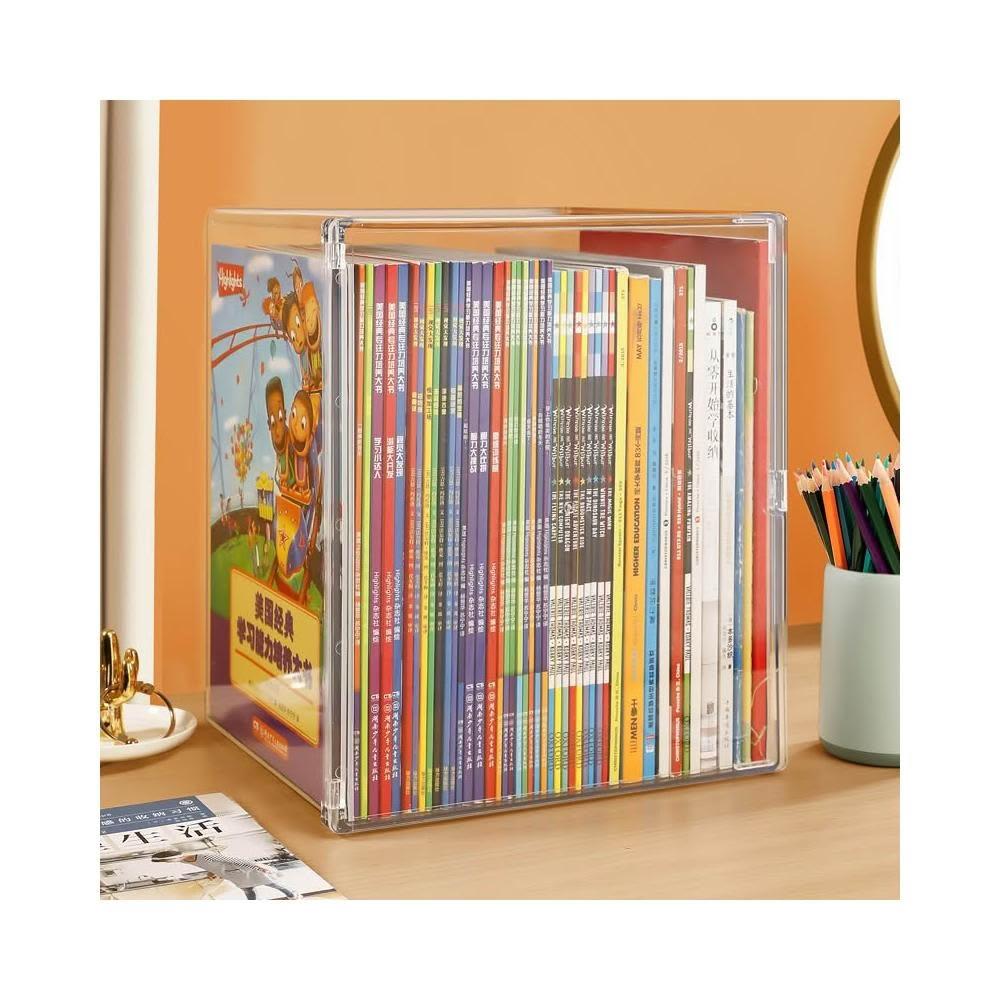 透明可疊加書本收納盒 桌面繪本防塵展示整理架
