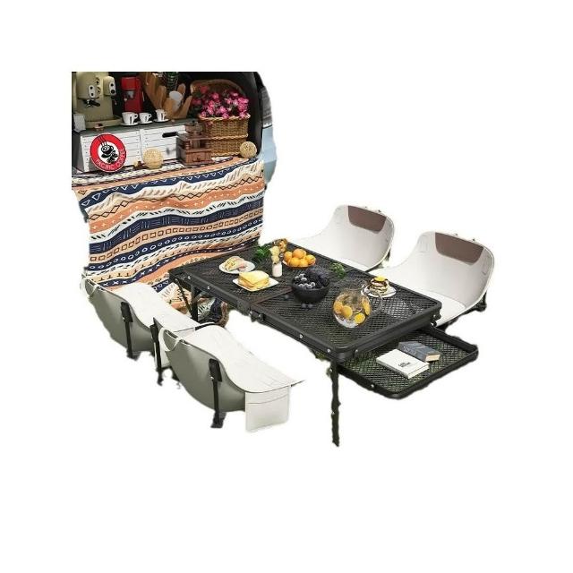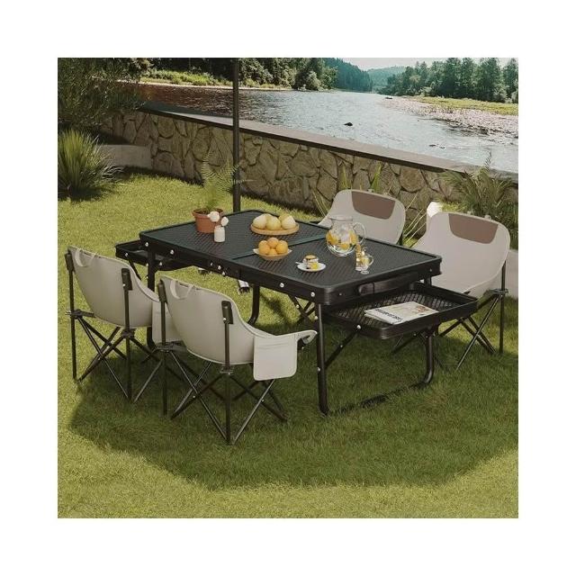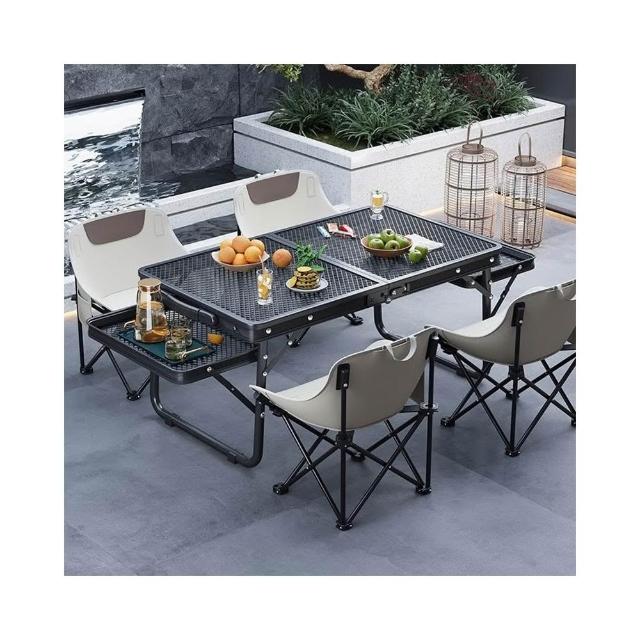 戶外桌子網格可攜式野餐桌椅套裝鋁合金燒烤桌露營裝備用品