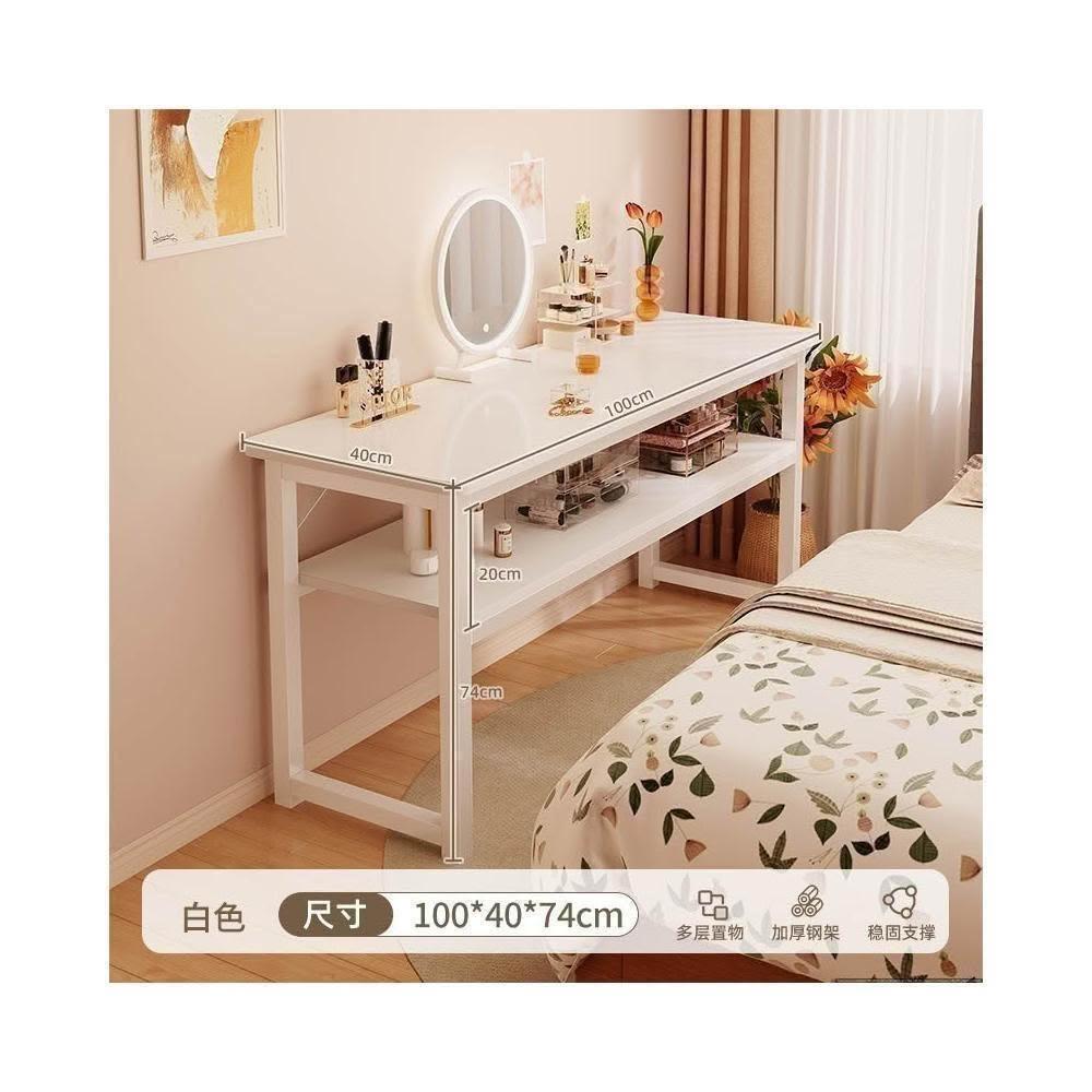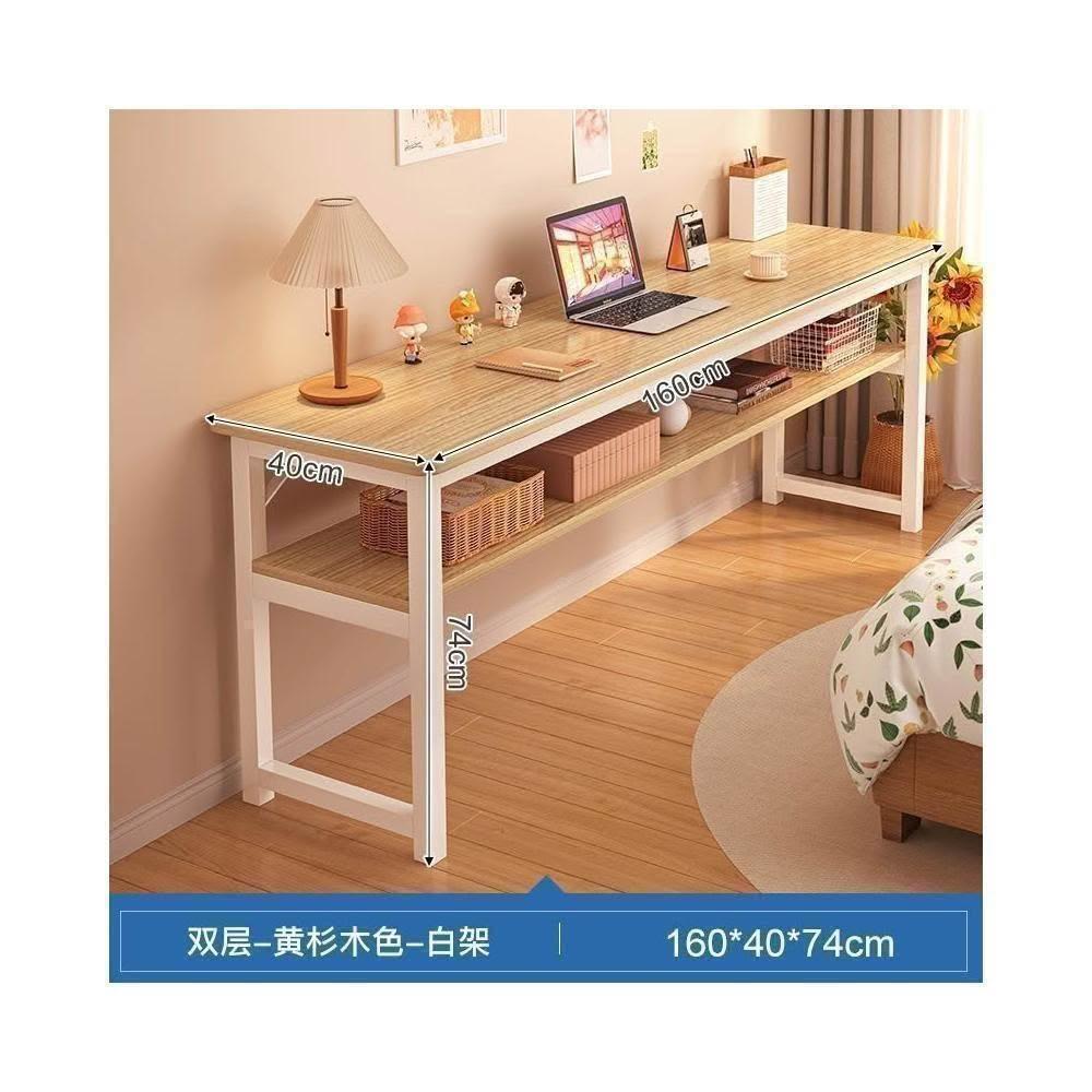 家用雙層窄長條桌 臥室學生辦公電腦收納書桌