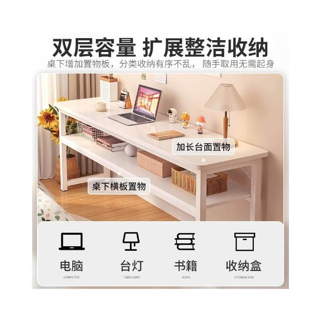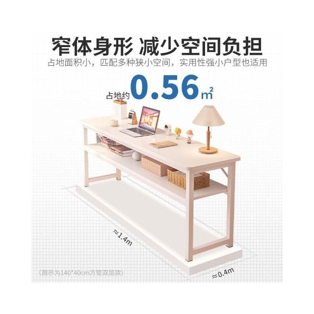 家用雙層窄長條桌 臥室學生辦公電腦收納書桌