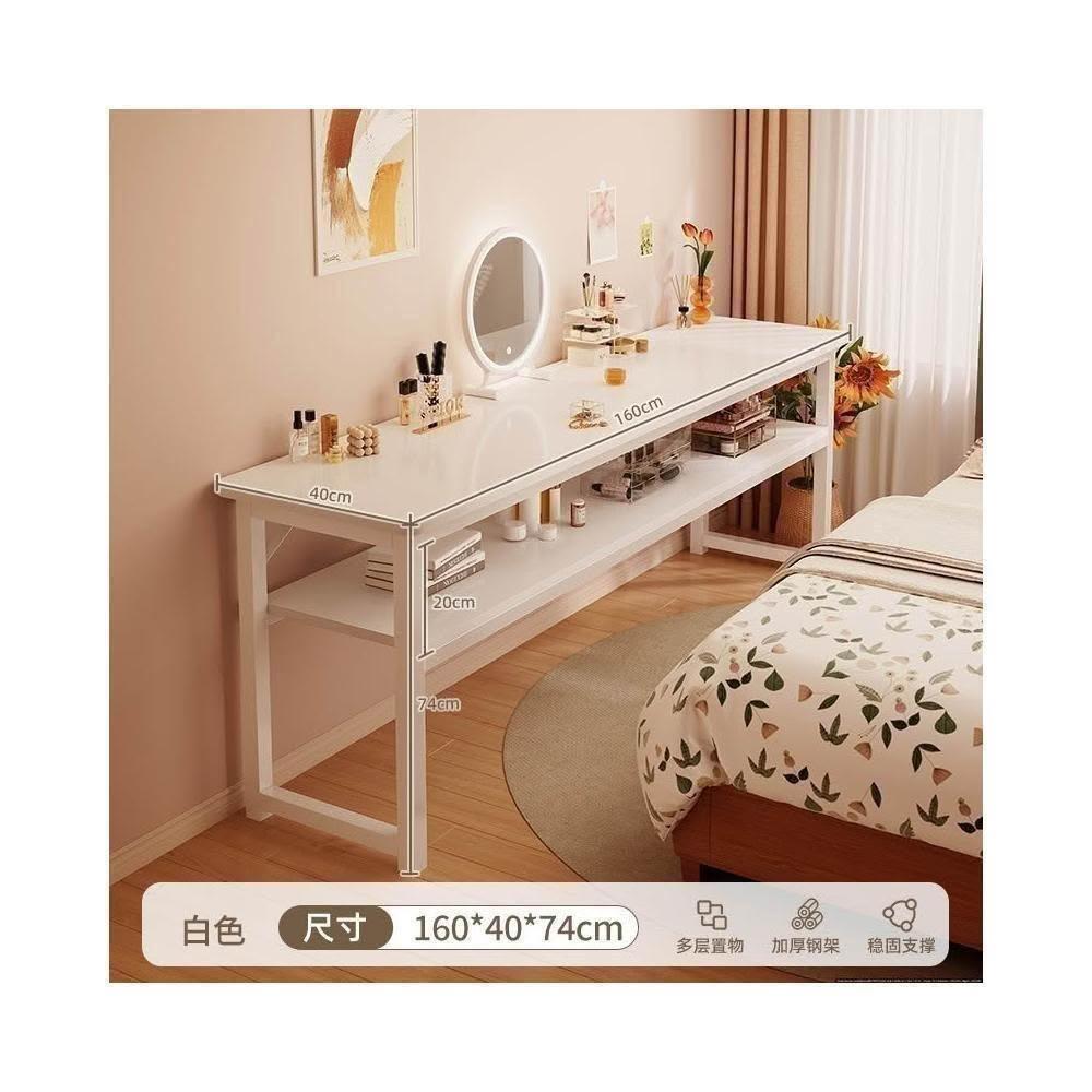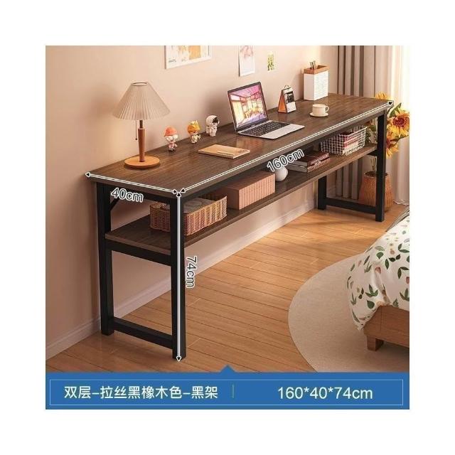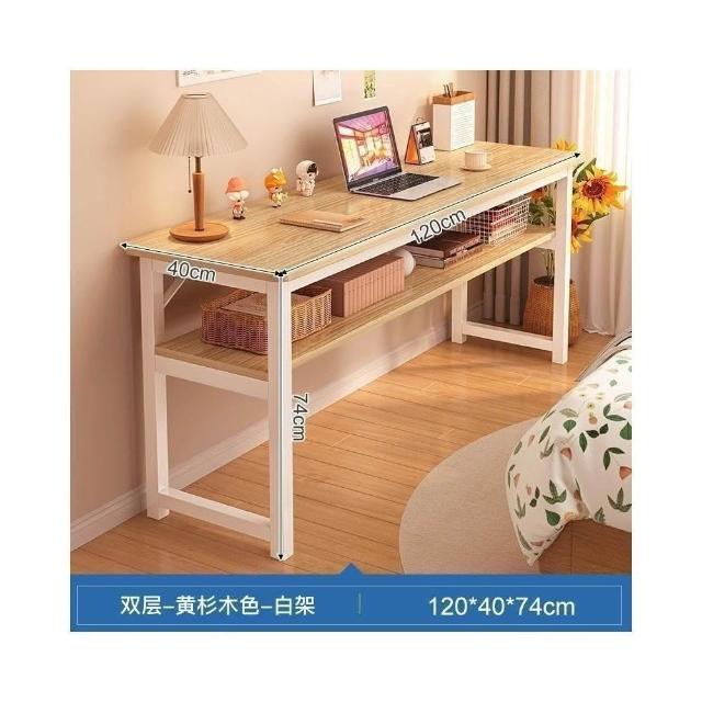 家用雙層窄長條桌 臥室學生辦公電腦收納書桌
