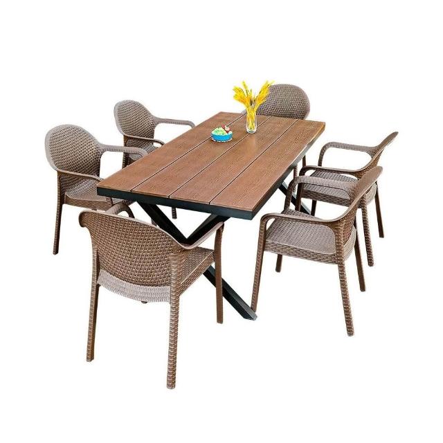 戶外桌椅庭院花園仿籐椅防水防潮室外休閒露臺塑木桌椅