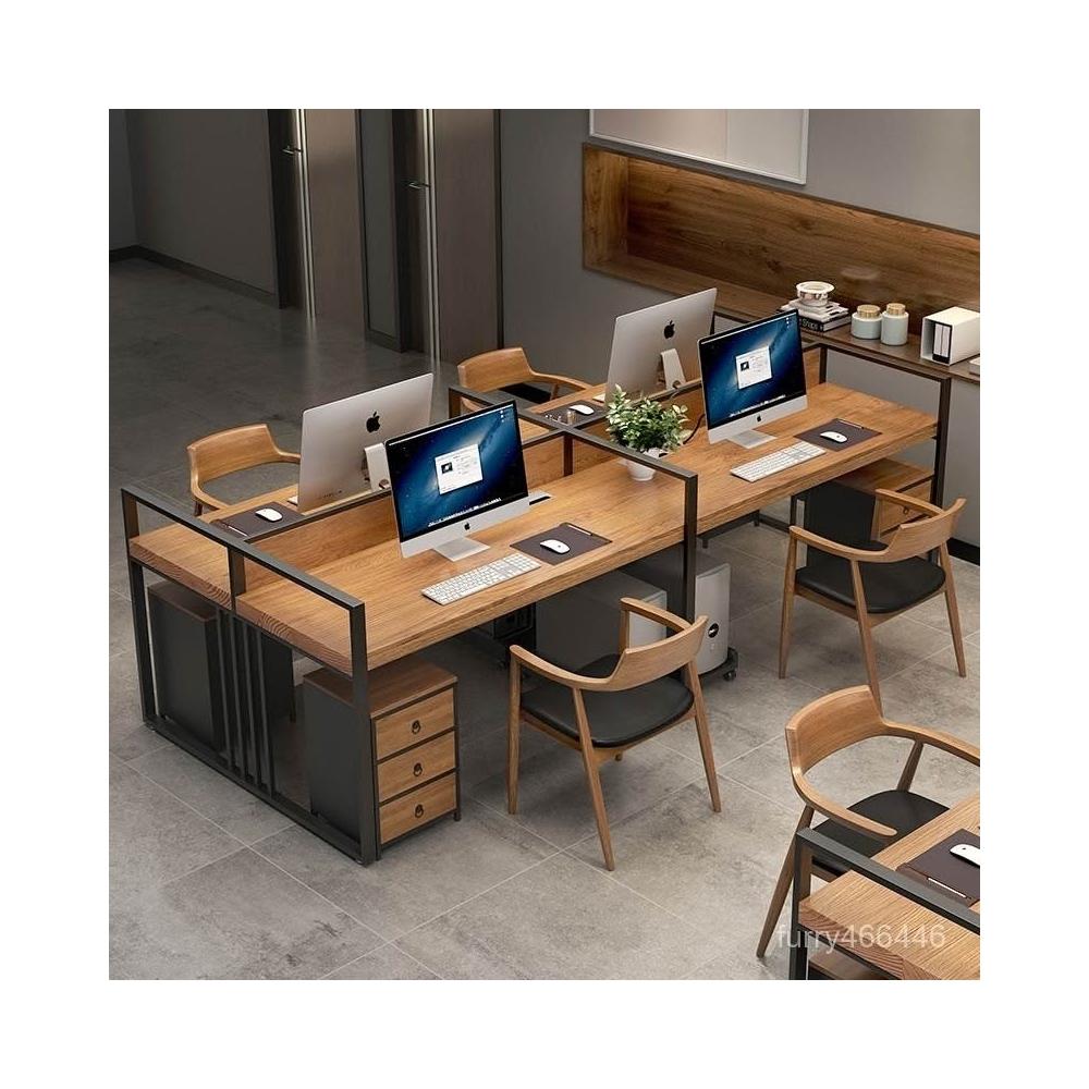 美式屏風辦公桌4人桌椅組閤工業風屏風職員桌卡位隔斷辦公室工位