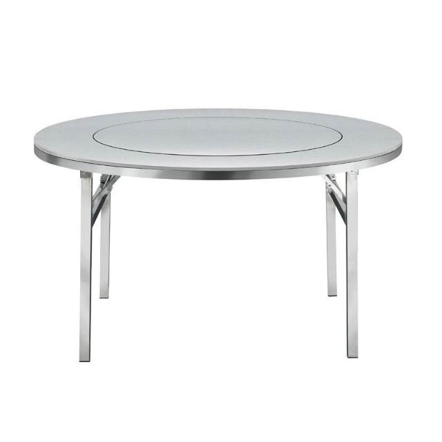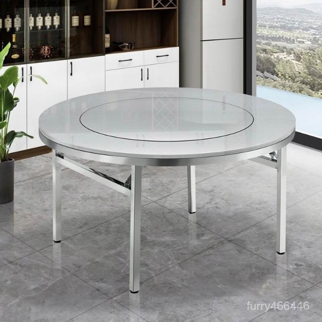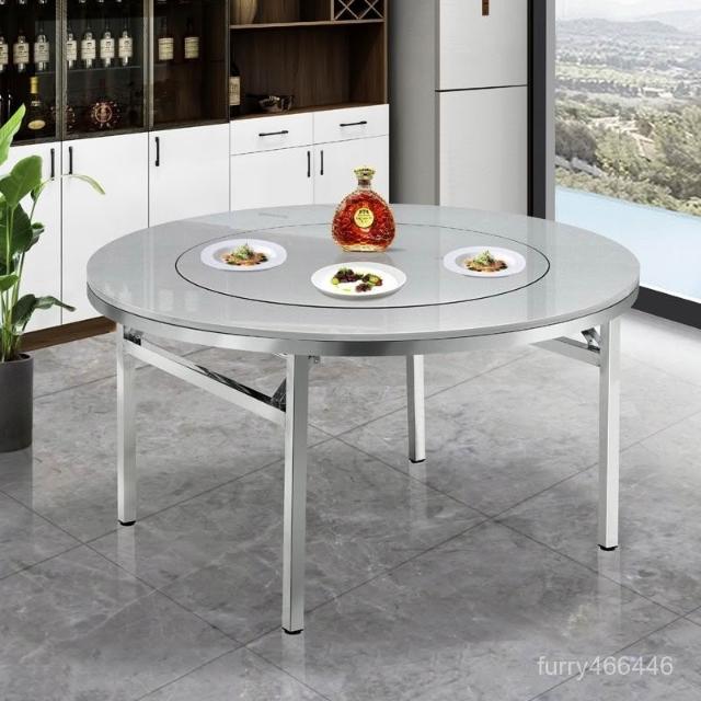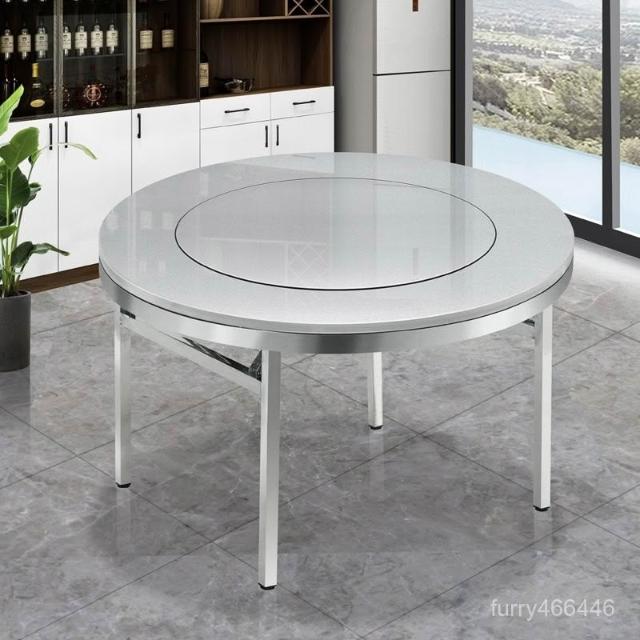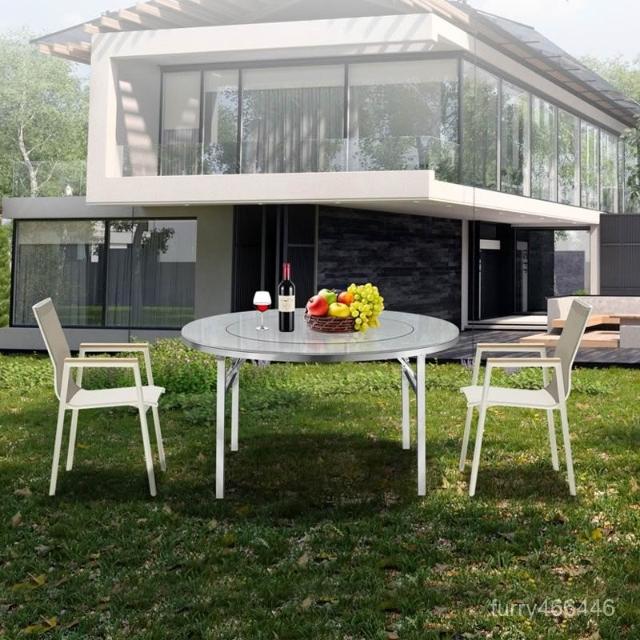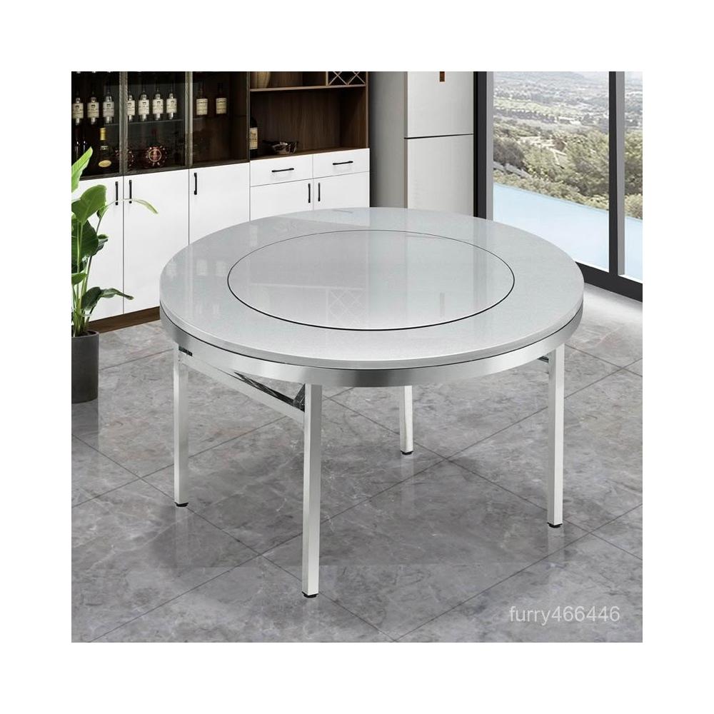 K8全不銹鋼內置轉盤餐桌可折疊家用飯店流動酒席戶外304防生銹圓
