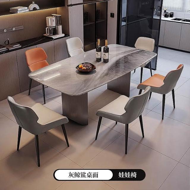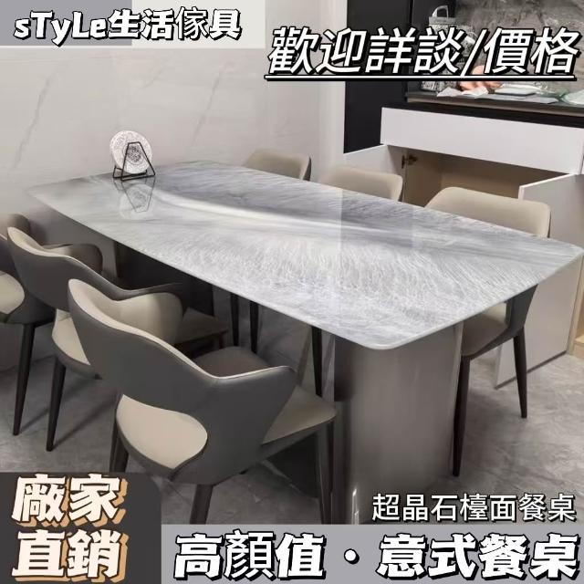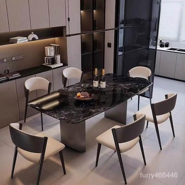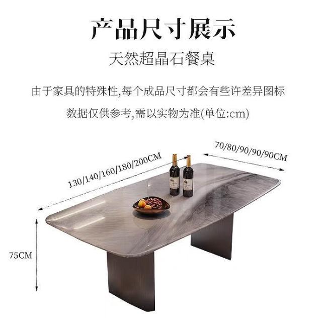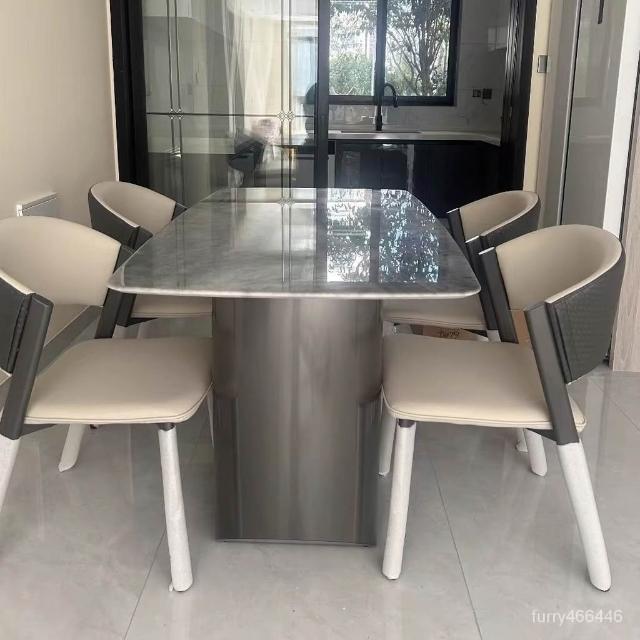 天然微晶石餐桌意式極簡約長方形超晶石餐桌輕奢大理石餐桌椅組閤