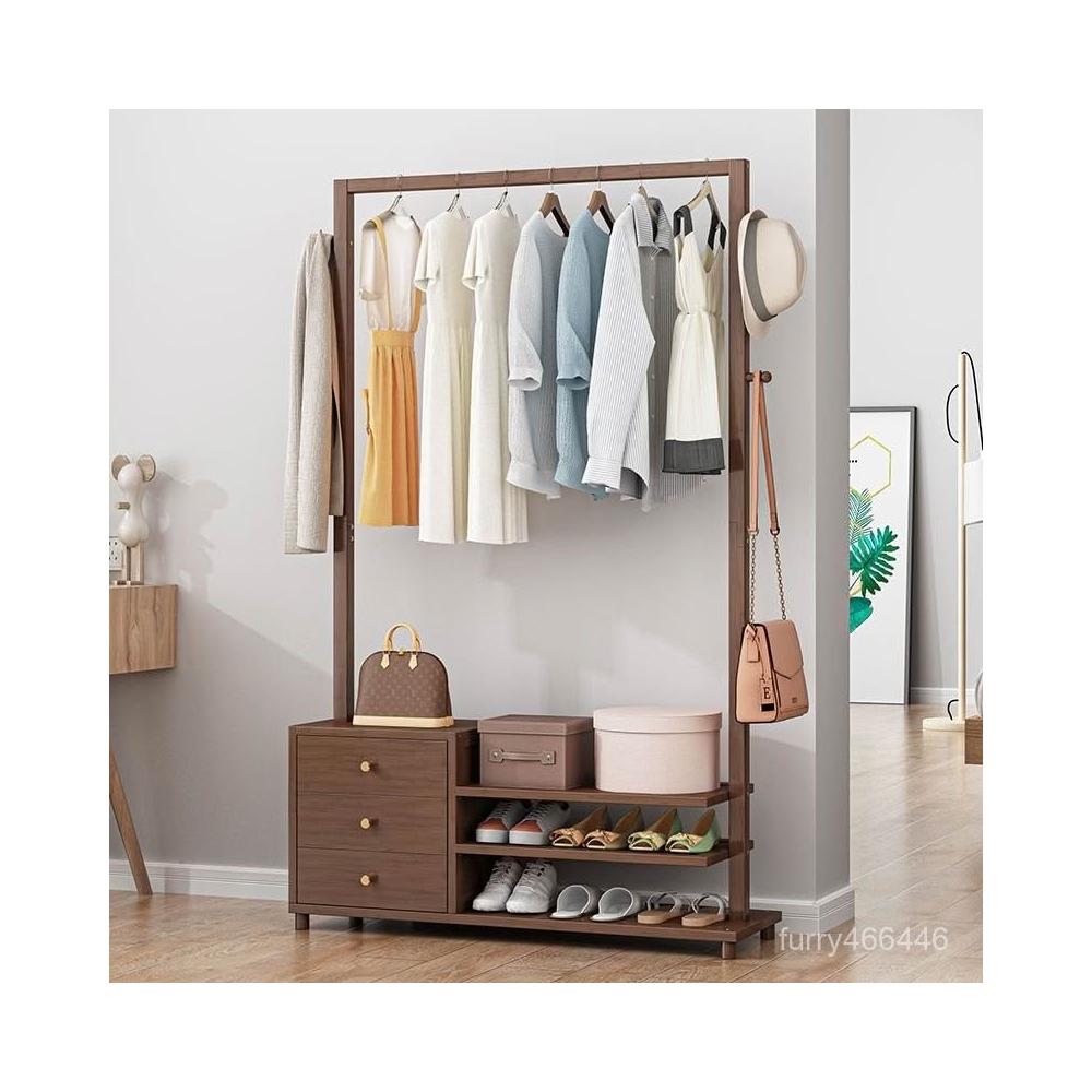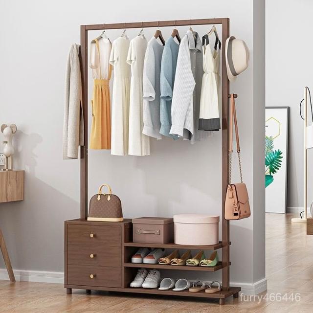 簡易衣帽架鞋架一體組閤掛衣架落地臥室內客廳家用多功能收納衣櫃