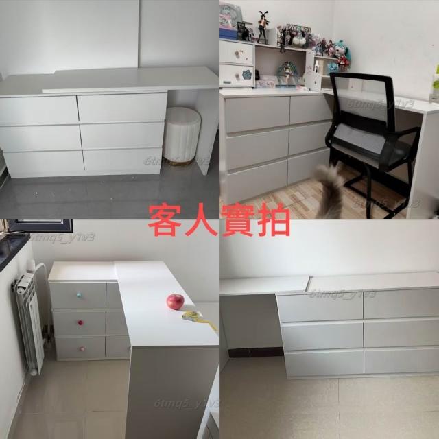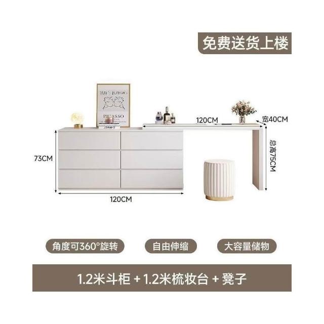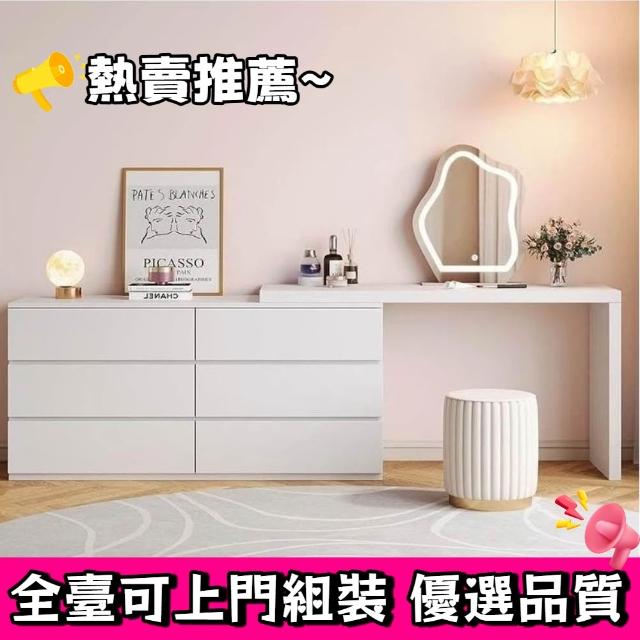斗櫃梳妝臺 六斗櫃 臥室鬥櫃一體收納櫃 奶油風書桌 可伸縮化妝桌 多功能梳妝桌子