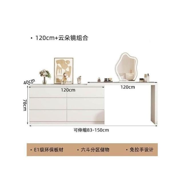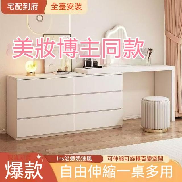 斗櫃梳妝臺 六斗櫃 臥室鬥櫃一體收納櫃 奶油風書桌 可伸縮化妝桌 多功能梳妝桌子