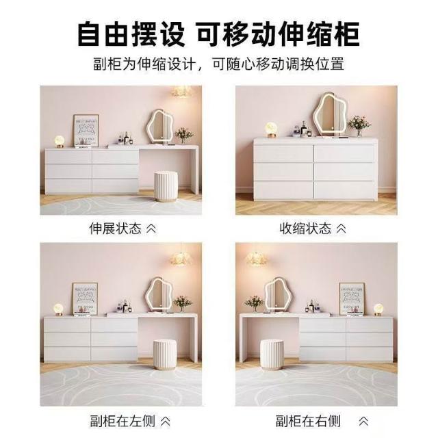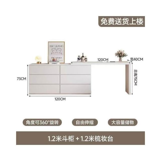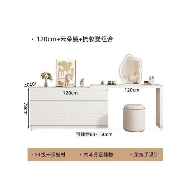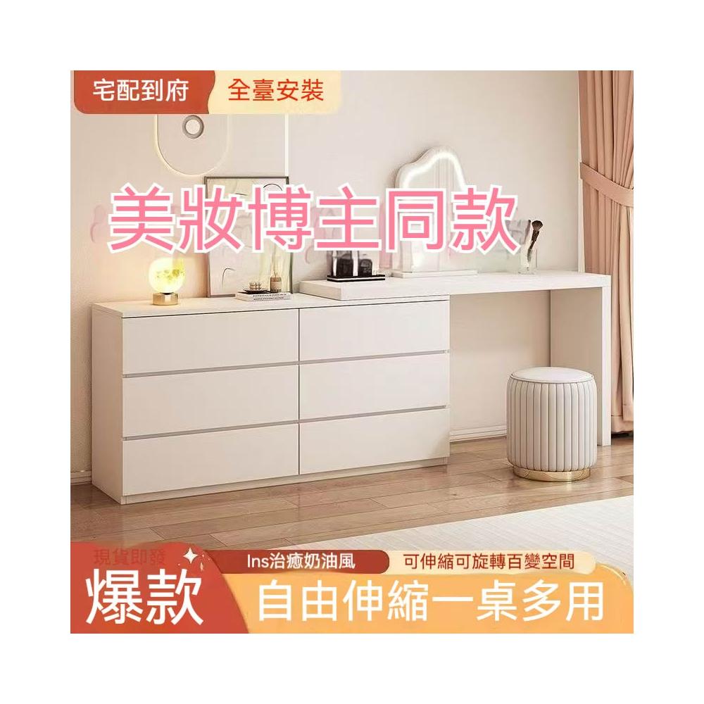 斗櫃梳妝臺 六斗櫃 臥室鬥櫃一體收納櫃 奶油風書桌 可伸縮化妝桌 多功能梳妝桌子