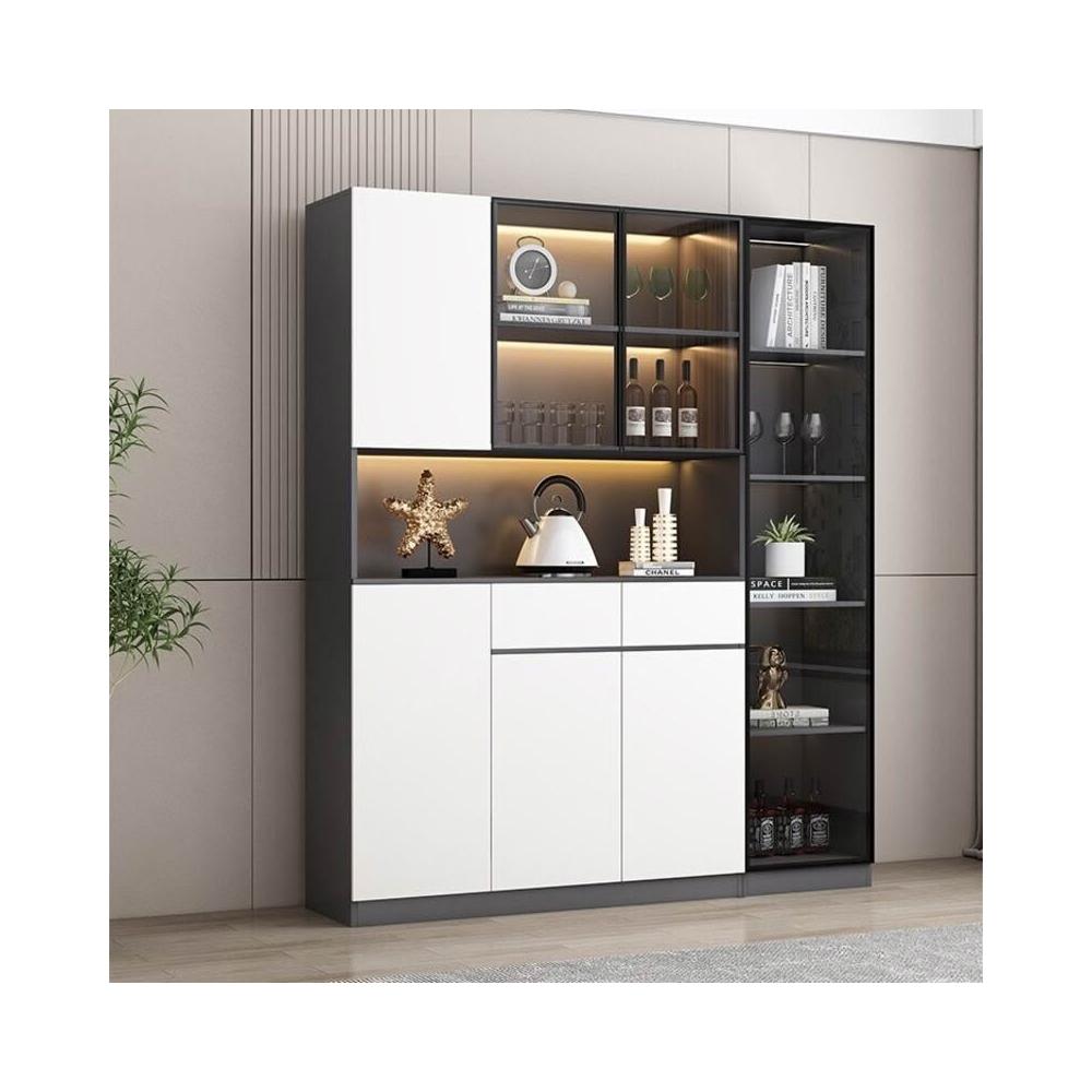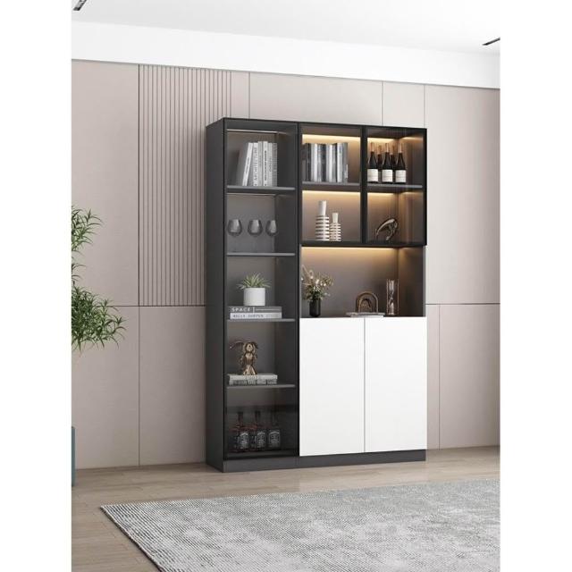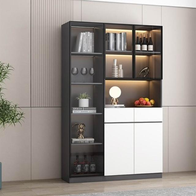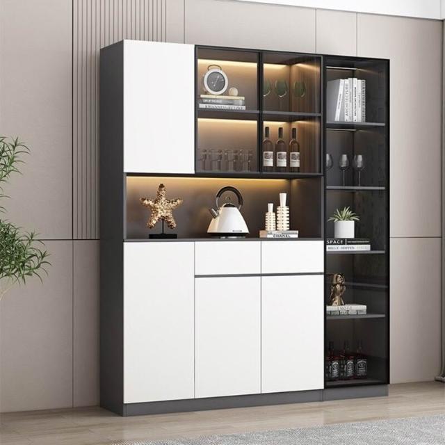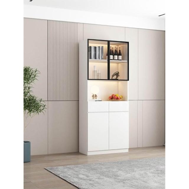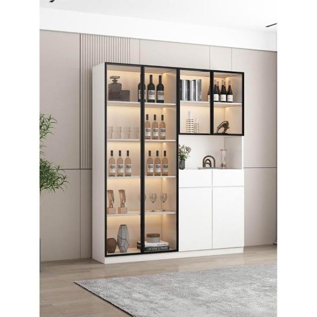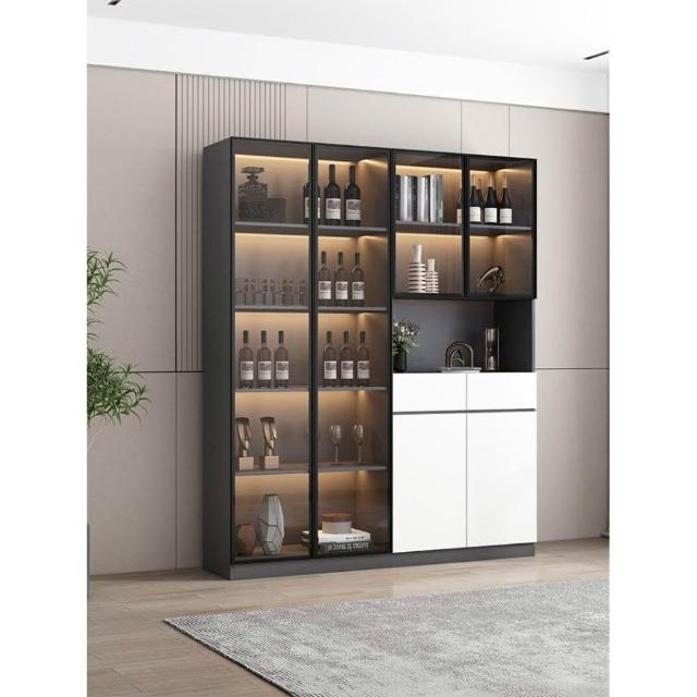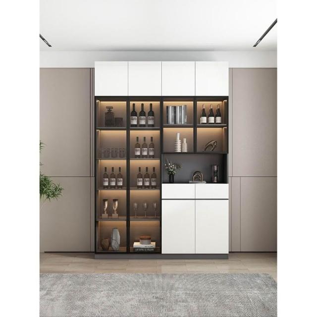 現代簡約輕奢客廳收納櫃意式玻璃門酒櫃餐廳櫃餐邊櫃高櫃一體靠墻