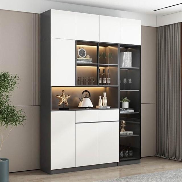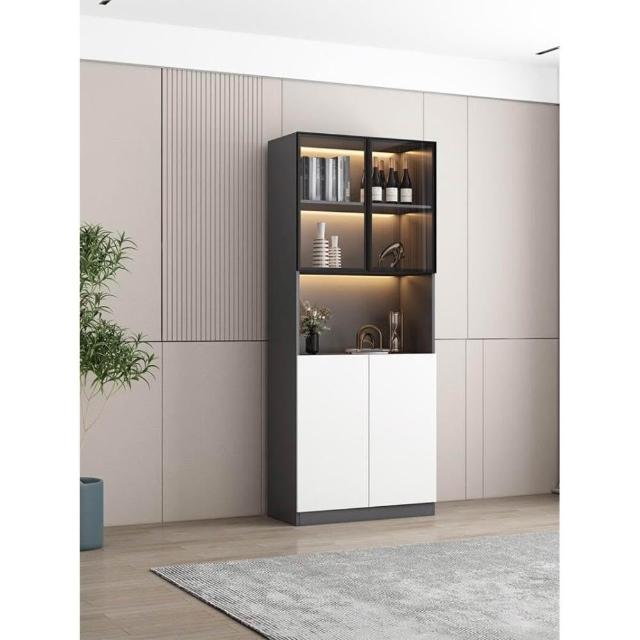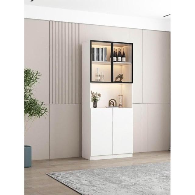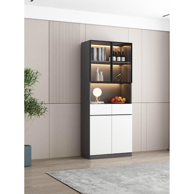 現代簡約輕奢客廳收納櫃意式玻璃門酒櫃餐廳櫃餐邊櫃高櫃一體靠墻