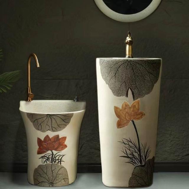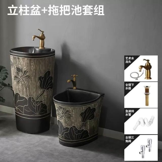 復古中式戶外洗手盆庭院立柱盆一體落地式花園洗手池室外洗臉盆