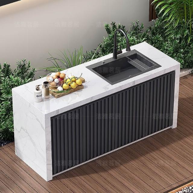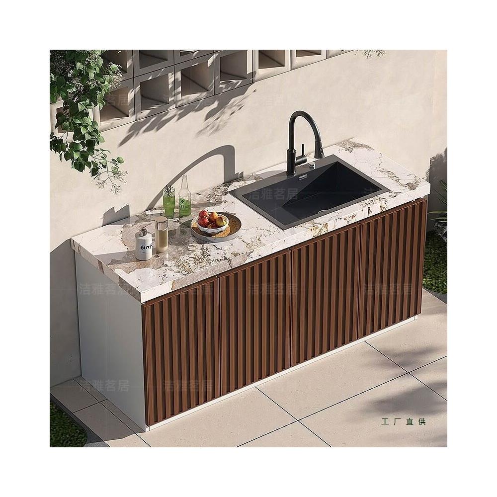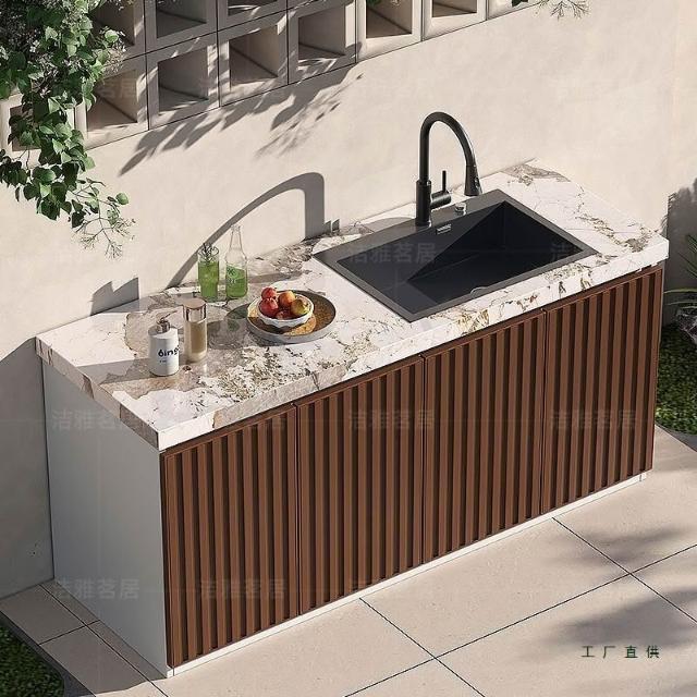 戶外庭院洗手臺巖板操作臺室外洗手池臺盆一體櫃陽臺家用洗衣槽子