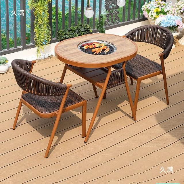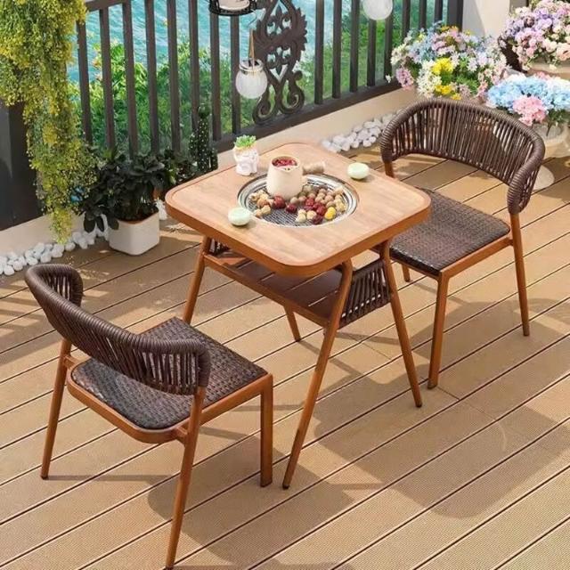 陽臺桌椅圍爐煮茶桌椅組合戶外休閑庭院炭火爐燒烤家用電陶爐餐桌