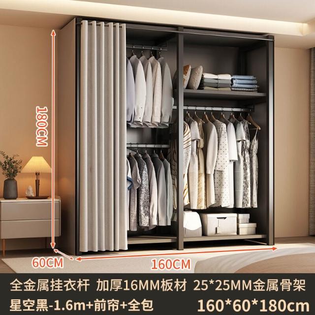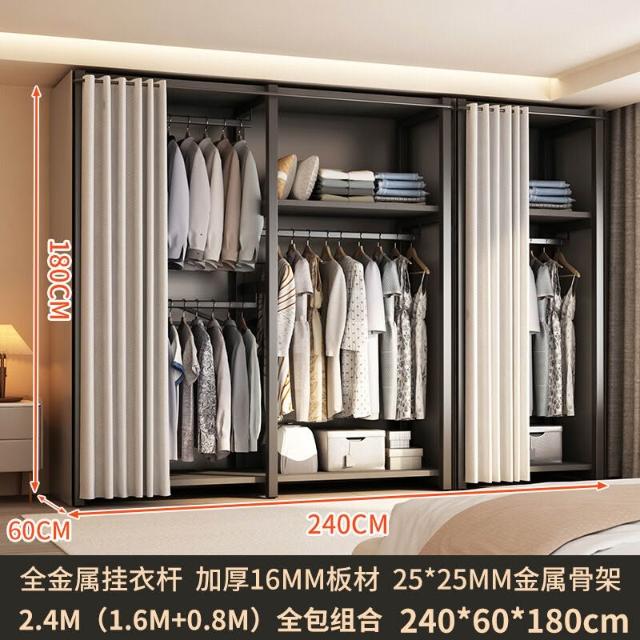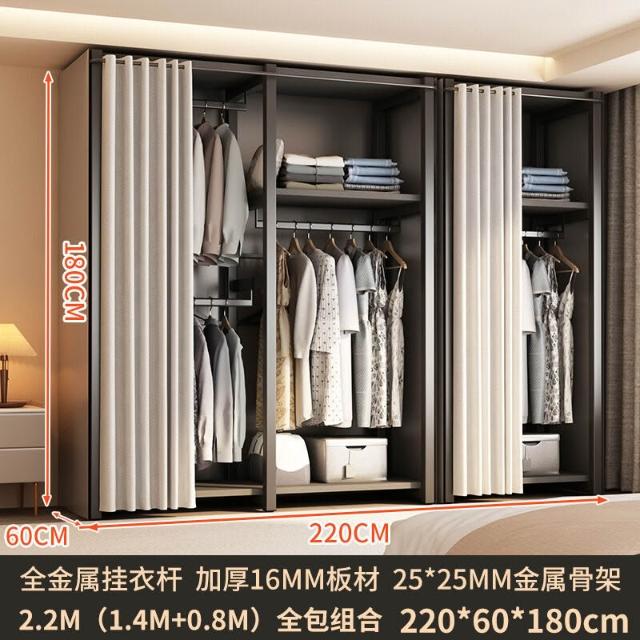 金屬衣櫃家用臥室簡易組裝全鋼架衣櫥衣帽間洞洞板櫃子組合掛衣櫃