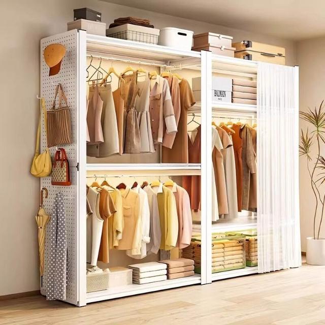 貨架衣櫃家用臥室出租房衣物收納簡易組裝落地洞洞板衣櫥金屬衣架