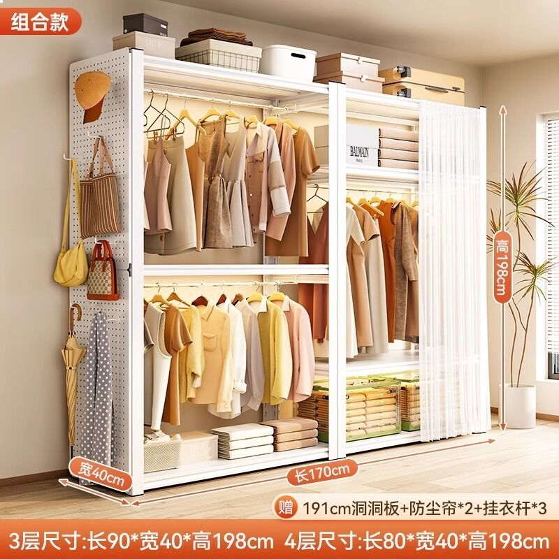 貨架衣櫃家用臥室出租房衣物收納簡易組裝落地洞洞板衣櫥金屬衣架
