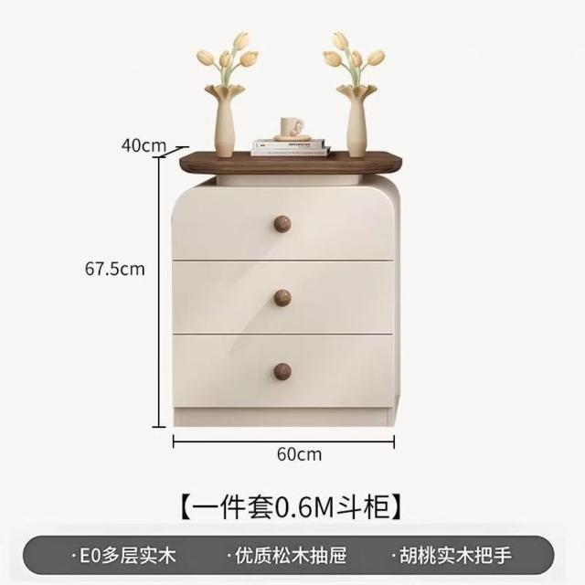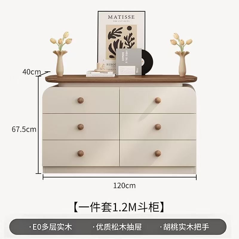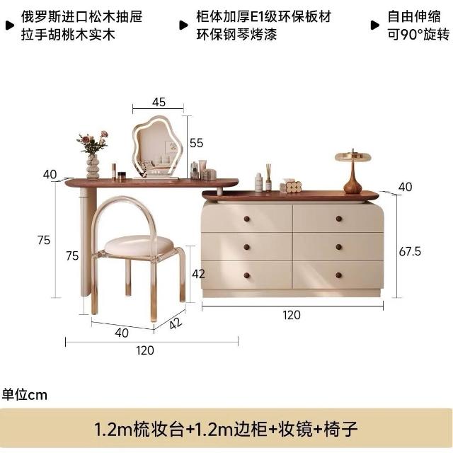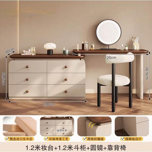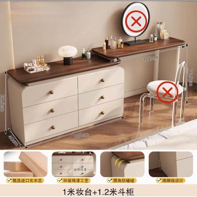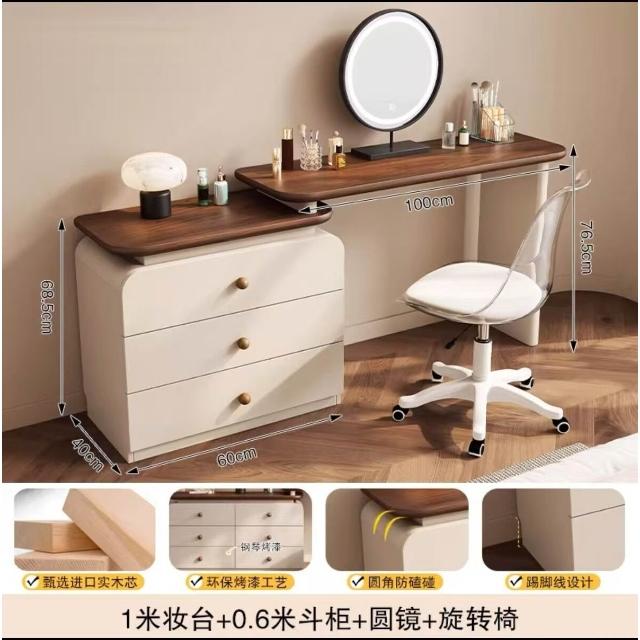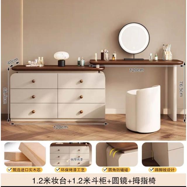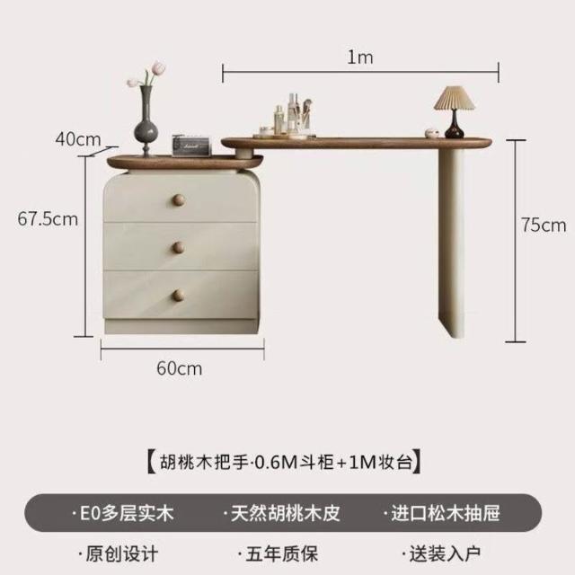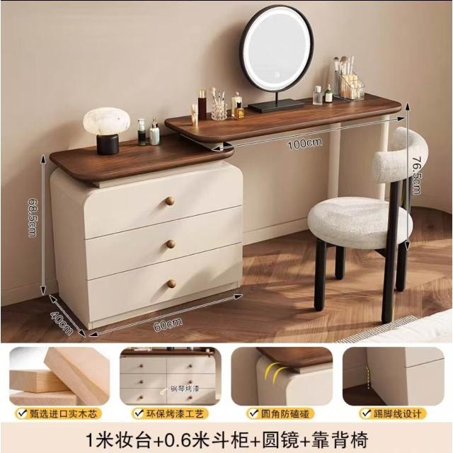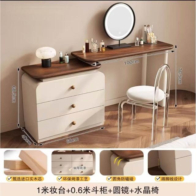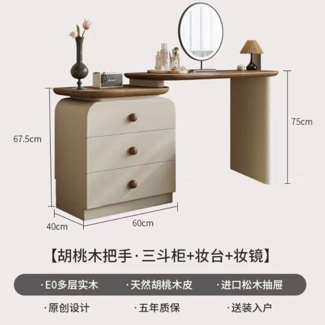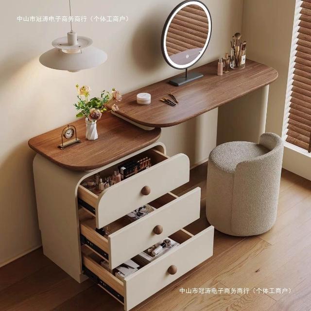 中古奶油風實木梳妝臺收納一體簡約現代胡桃色鬥櫃臥室儲物化妝桌