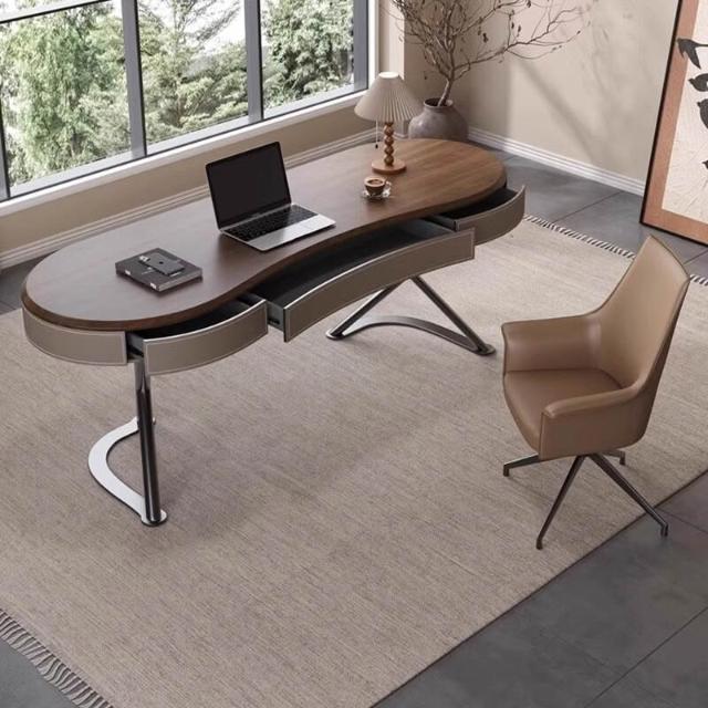 意式極簡實木書桌北美黑胡桃木辦公桌現代簡約輕奢書房家用寫字臺