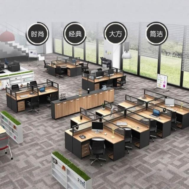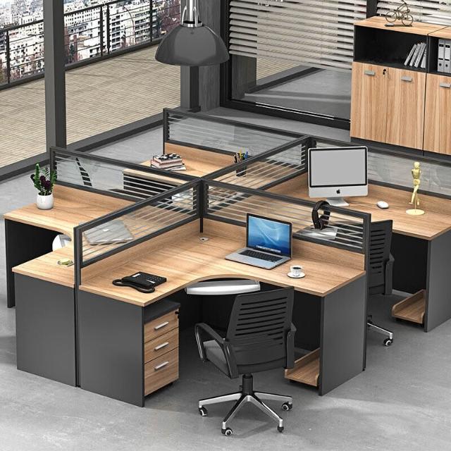 辦公桌4人位桌椅組合簡約現代l型工位員工6人屏風卡位隔斷辦公桌