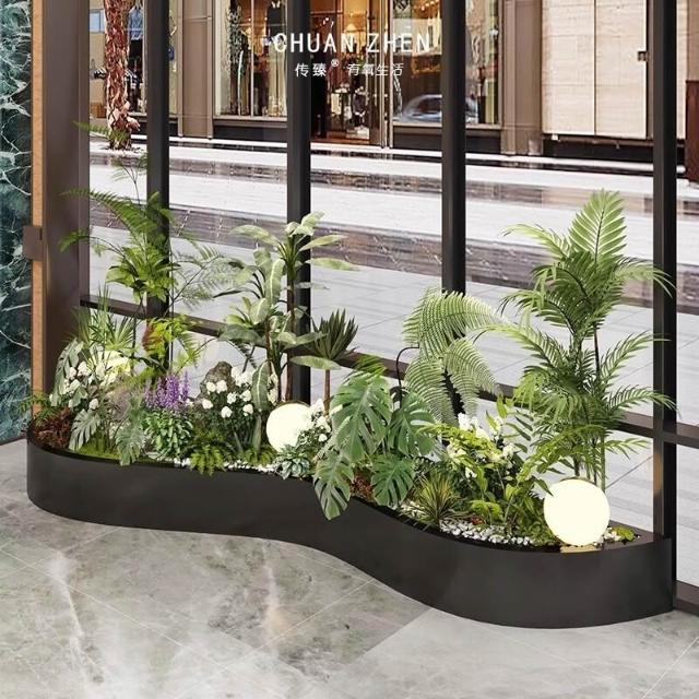 不銹鋼陽臺弧形花箱花園造景布置花池成品花槽異形室內種植盆