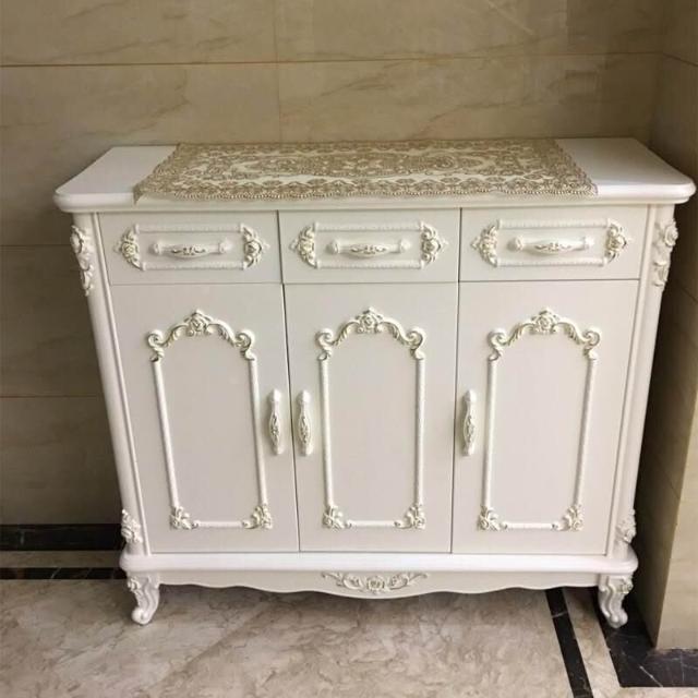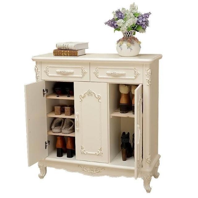 歐式雕花奢華雕花鞋櫃白色門廳玄關櫃大容量儲物櫃簡歐三開門鞋櫃