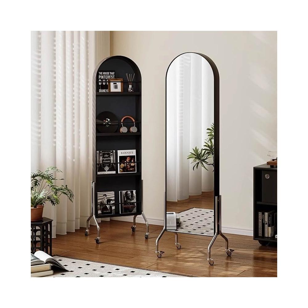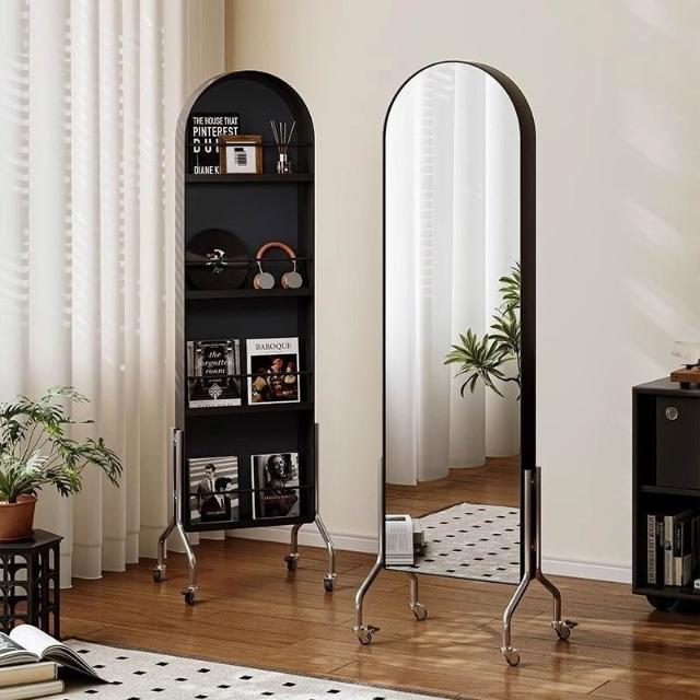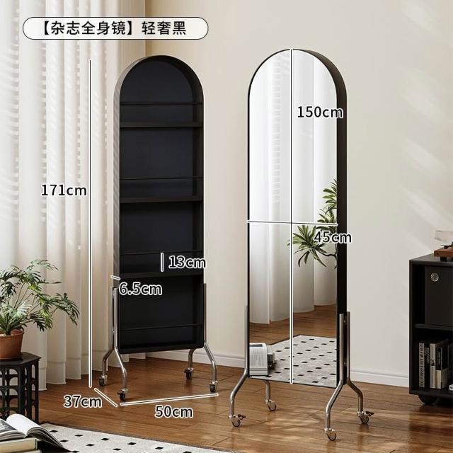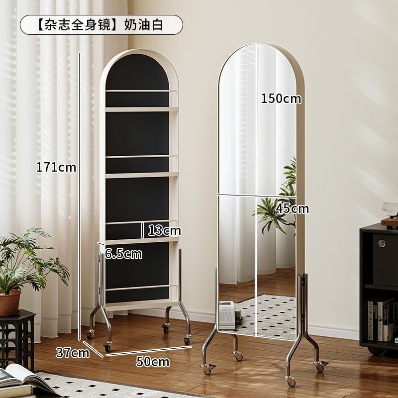 可移動鏡子全身鏡中古風收納雜誌架落地書報展示置物架旋轉穿衣鏡