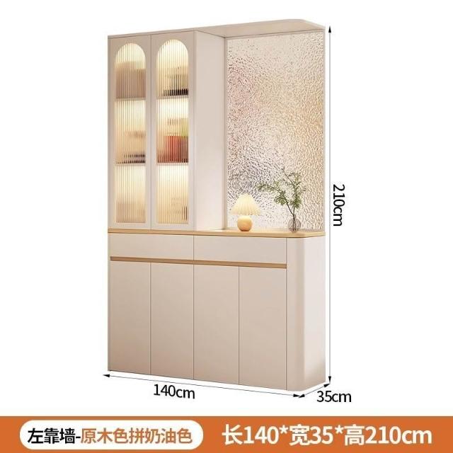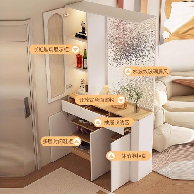 奶油風屏風隔斷玄關櫃鞋櫃一體入戶正對門客廳沙發擋櫃置物架酒櫃