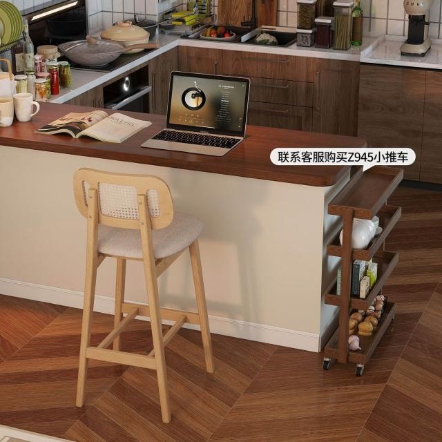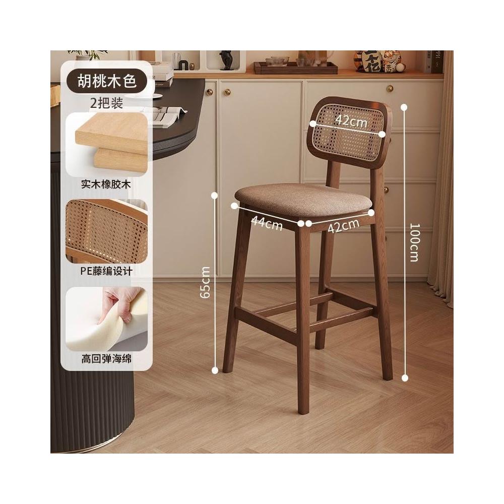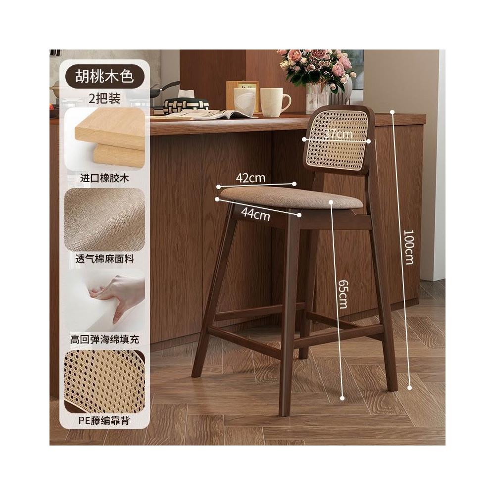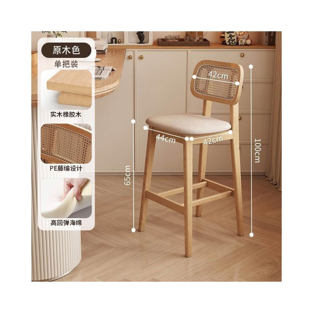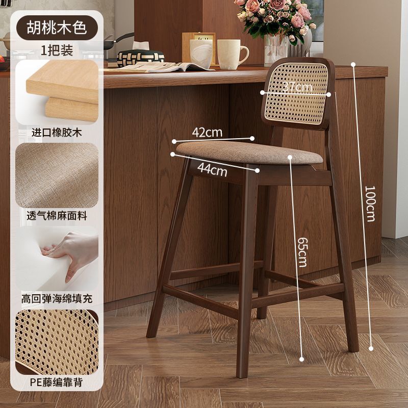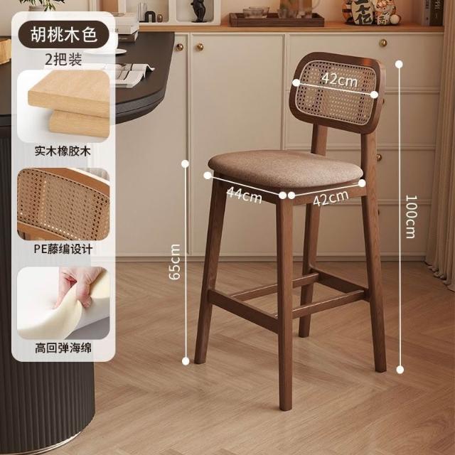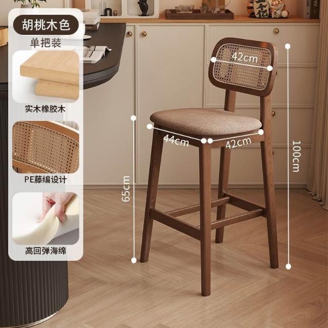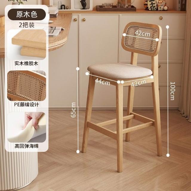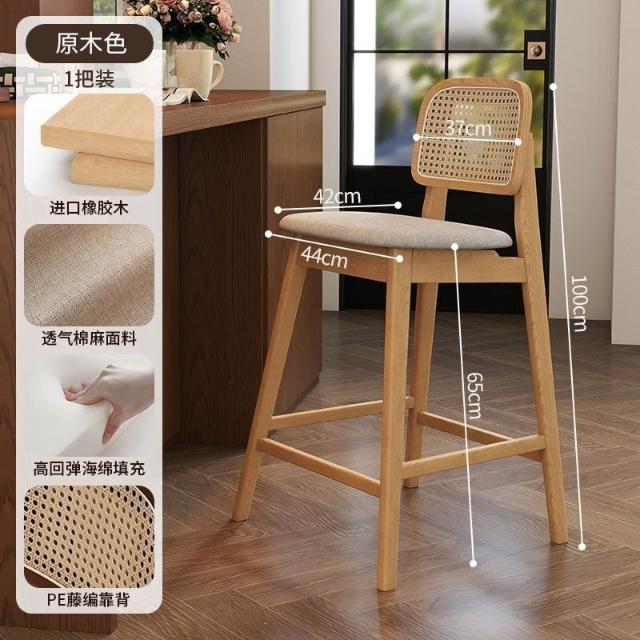 日式實木吧臺椅 原木風藤編吧臺靠背椅 陽臺吧椅簡約家用餐椅 靠背椅