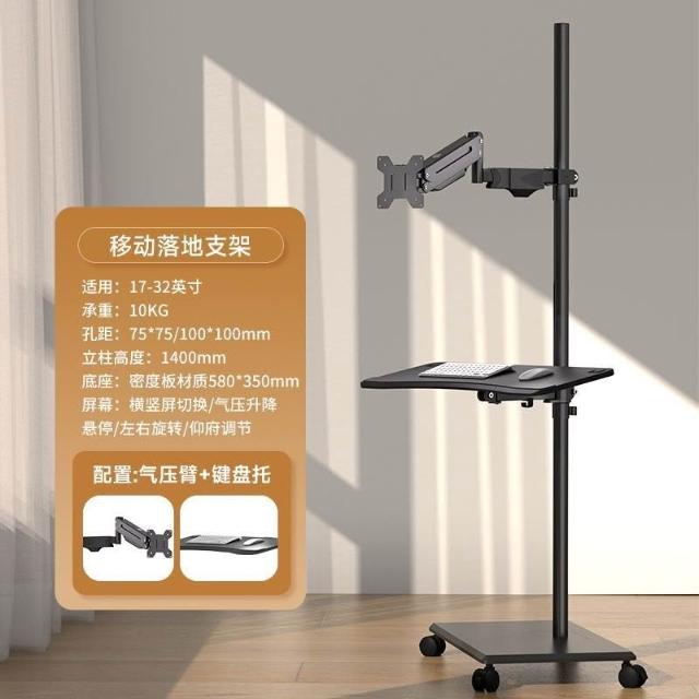 顯示器落地式支架可移動升降工作臺帶鍵盤托屏幕旋轉伸縮懸臂掛架
