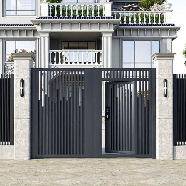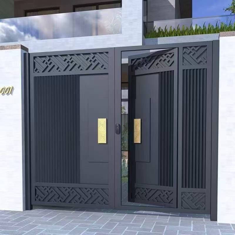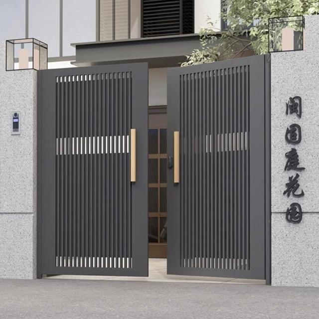 鋁合金庭院門頭對開鋁藝別墅院子大門樓自建房鐵藝花園電動門