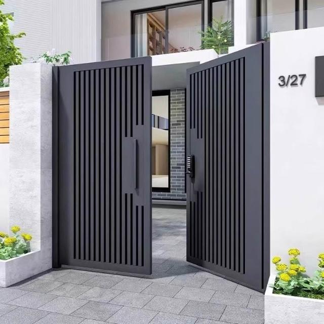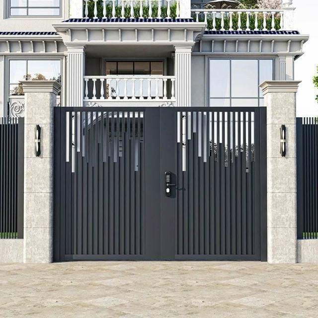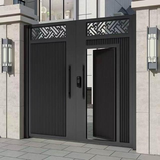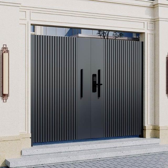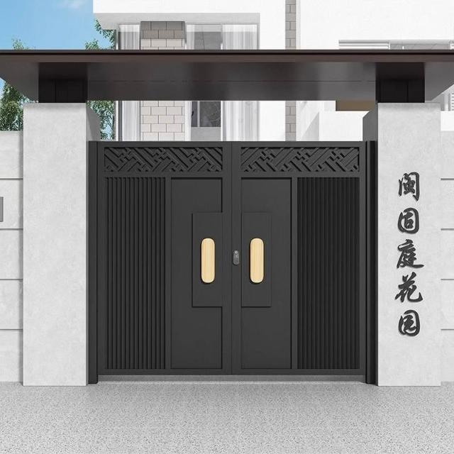鋁合金庭院門頭對開鋁藝別墅院子大門樓自建房鐵藝花園電動門
