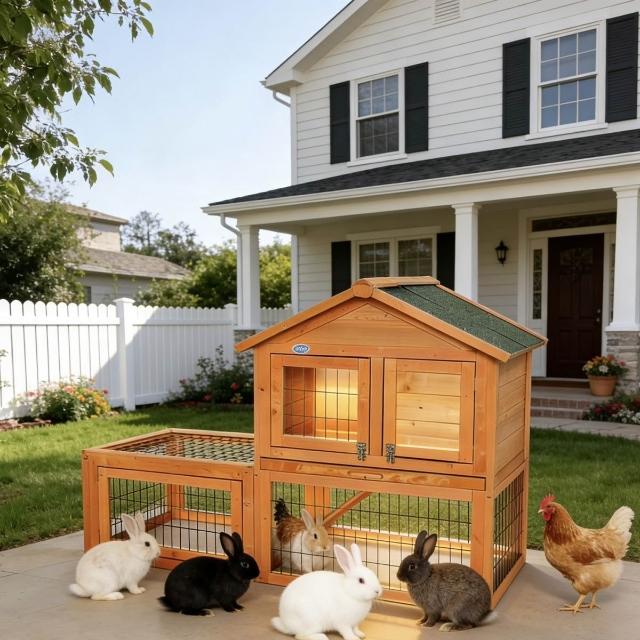 戶外實木兔籠別墅雙層戶外兔窩寵物籠子防雨豪華兔子雞籠鴿子籠