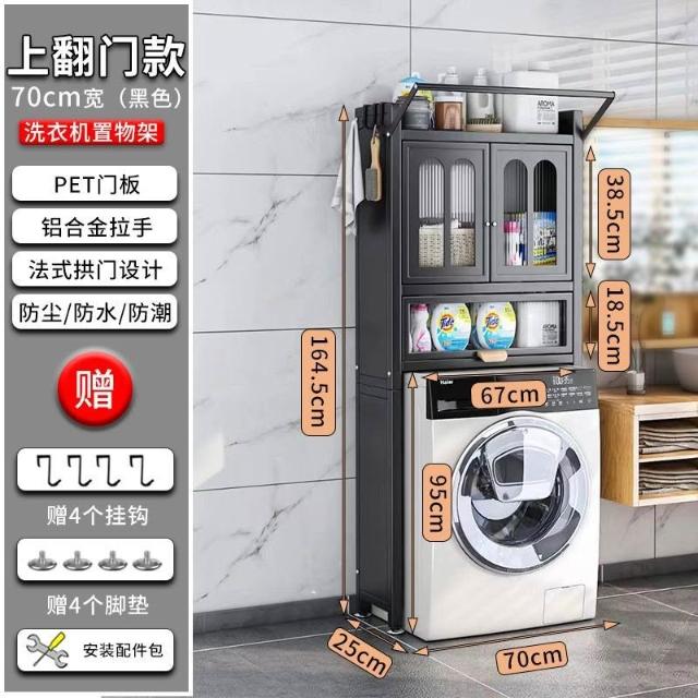 衛生間置物架滾筒洗衣機陽臺浴室翻蓋式一體洗衣機上架子落地櫃門